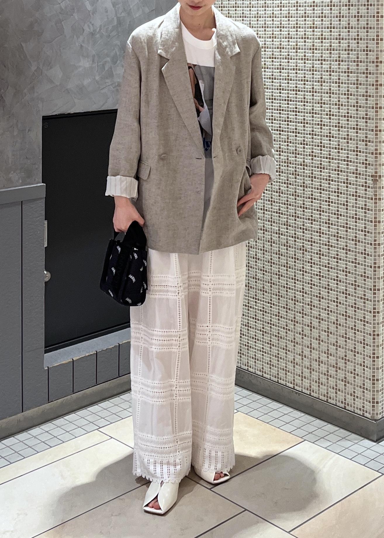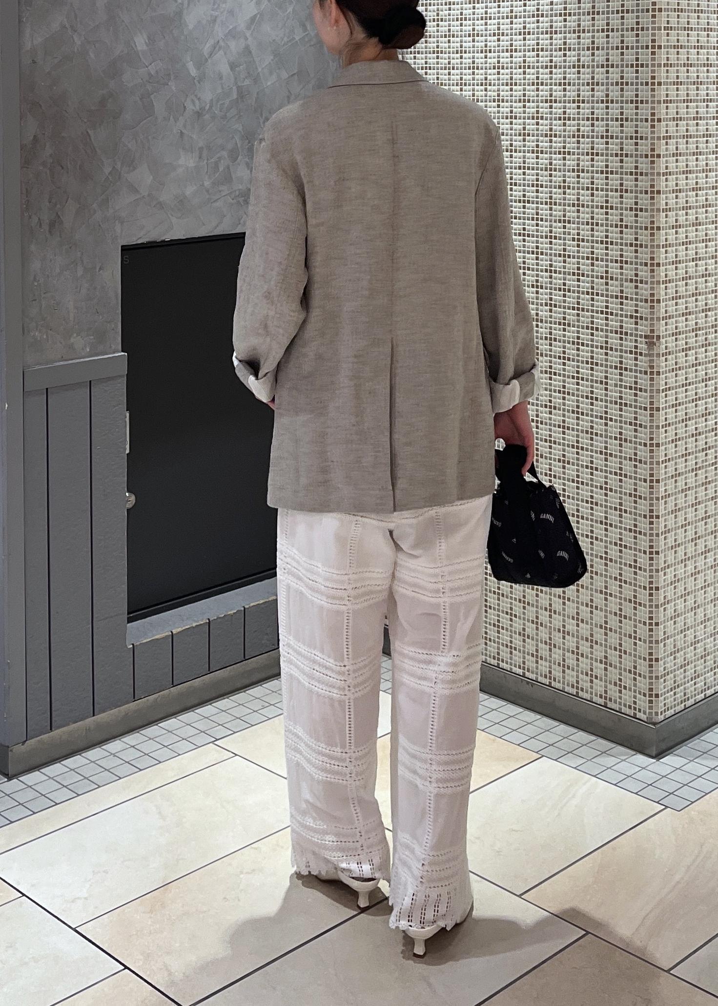 ADAM ET ROPÉ FEMME【一部WEB限定カラー】エンブロイダリーイージーパンツホワイト / 36¥26,400レビュー163㎝36サイズで足首ほどの着丈でした。ウエストはヒモで調節できます◎ホワイトは透け感がありますが、ペチコートが中に入ってるのでインナーへの心配は少ないです!