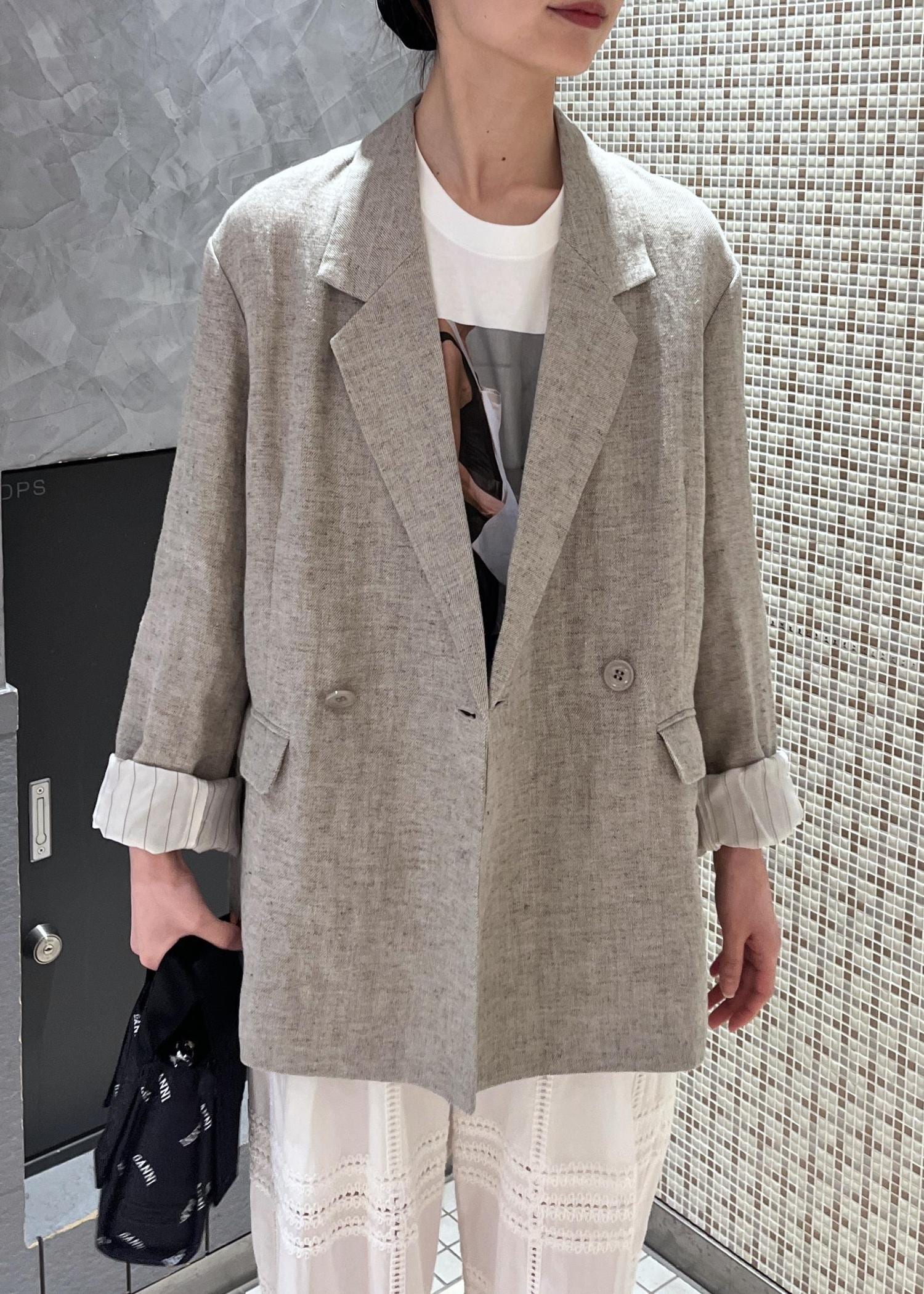 ADAM ET ROPÉ FEMMEリネンジャケットベージュ / 36¥37,400レビューリネンのサラッとした軽量なジャケットです。オーバーサイズでガバッと着ていただけます。袖にはストライプの裏地がついており、腕まくりしても可愛いです。