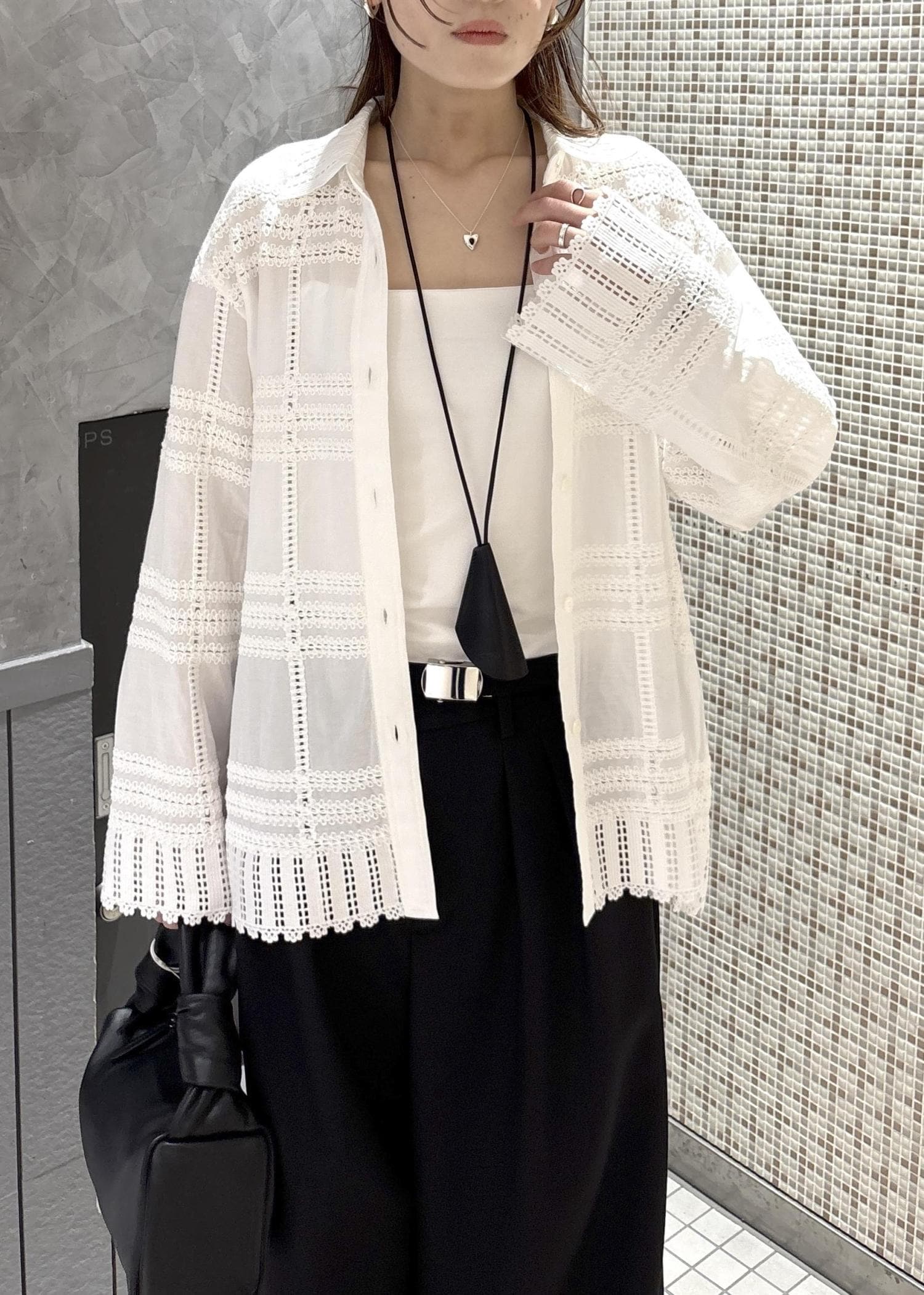 羽織るだけでサマになるレースシャツは、程よくしっかりとした素材で、カジュアルになりすぎずシワになりにくく使いやすいです◎
