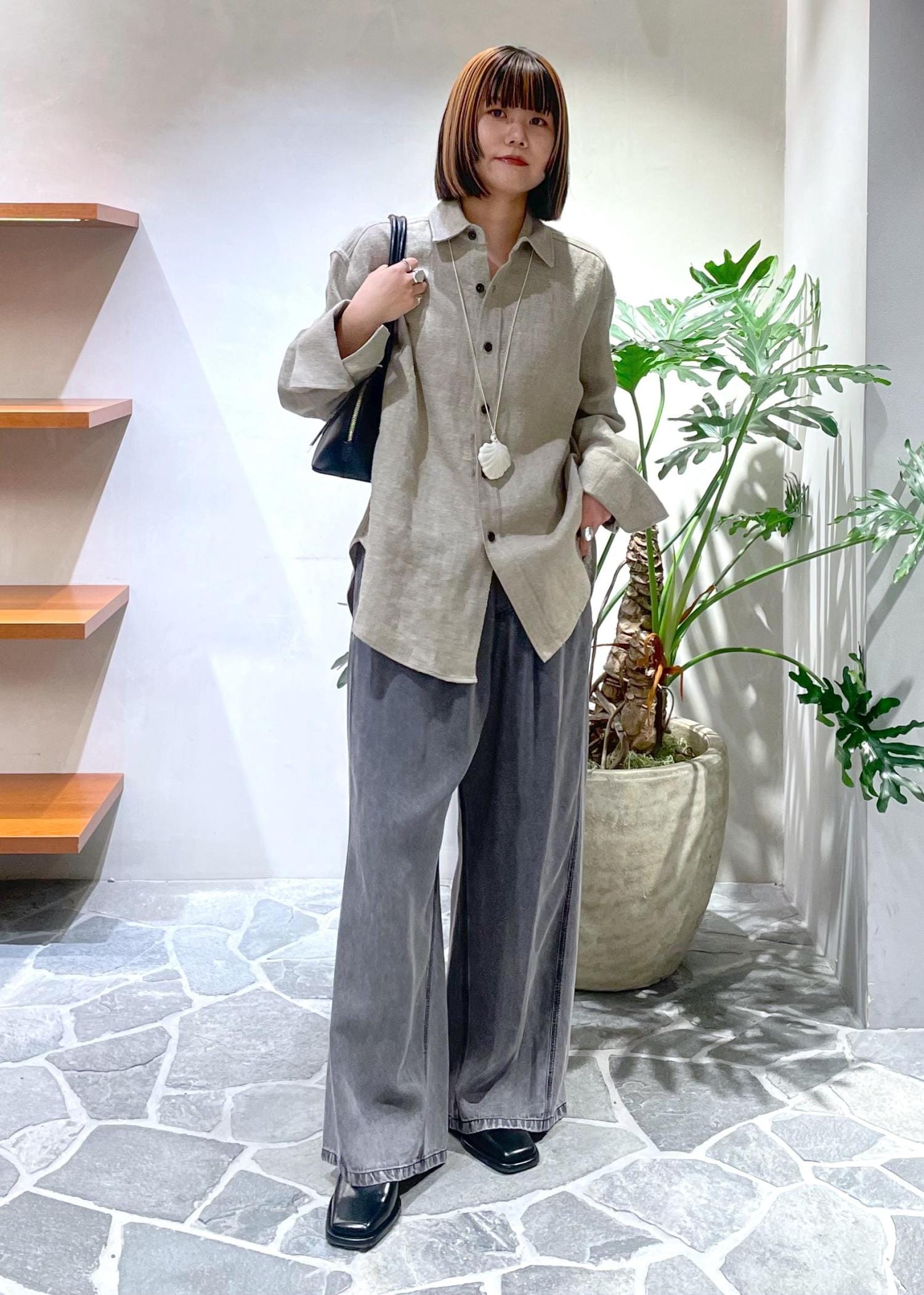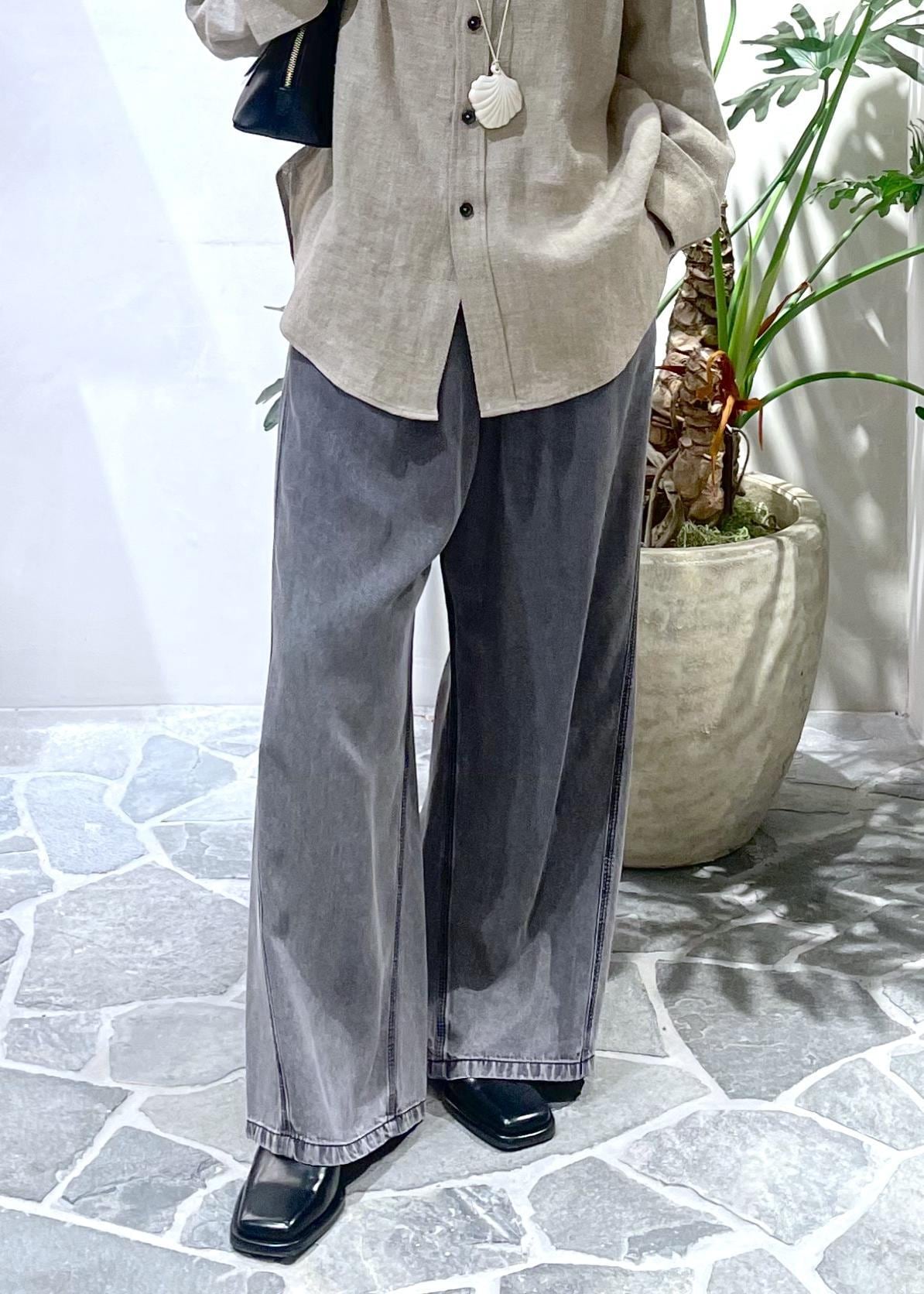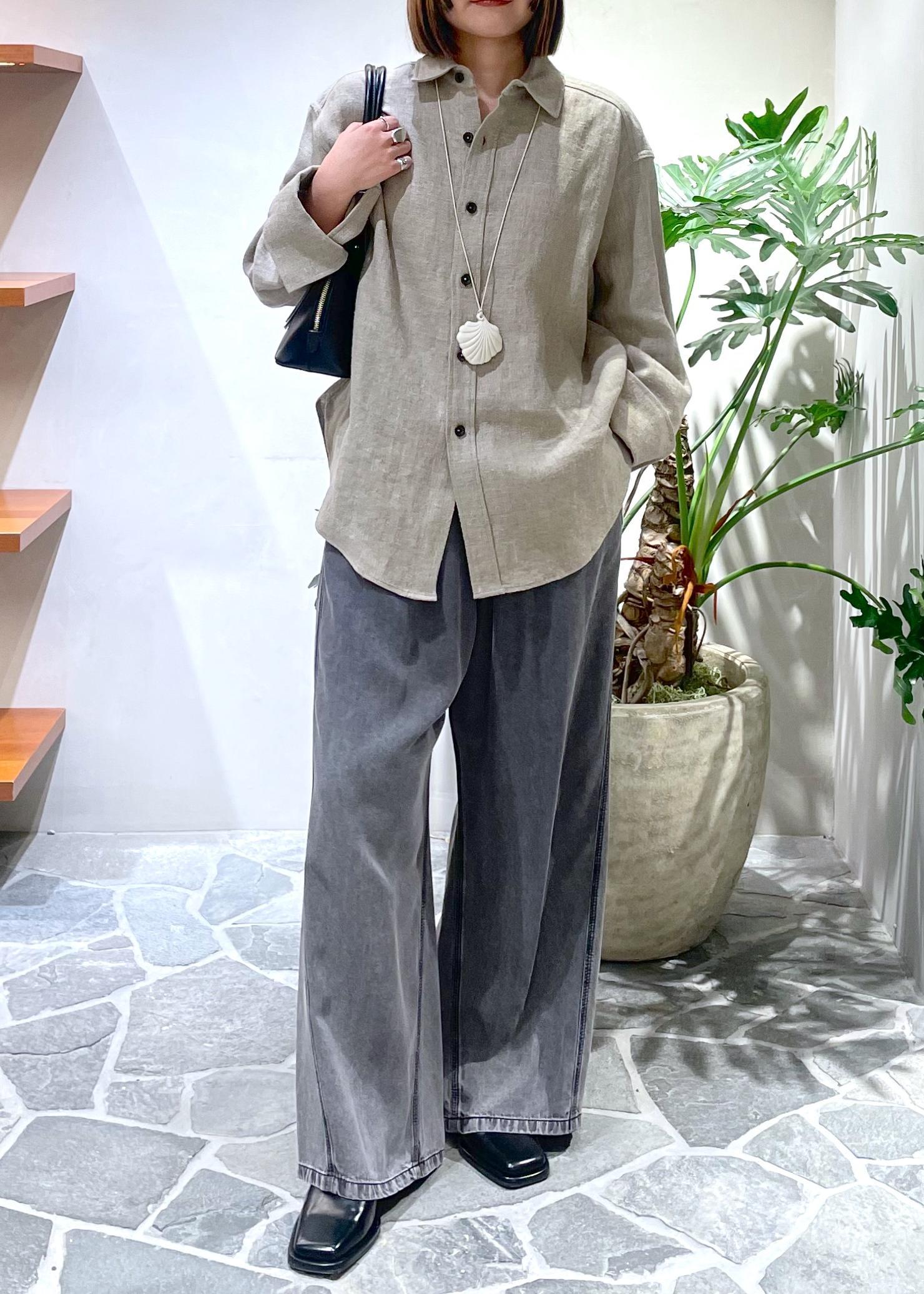 セルロースのとろみがある素材なのでワイドシルエットでも女性らしく着れます。