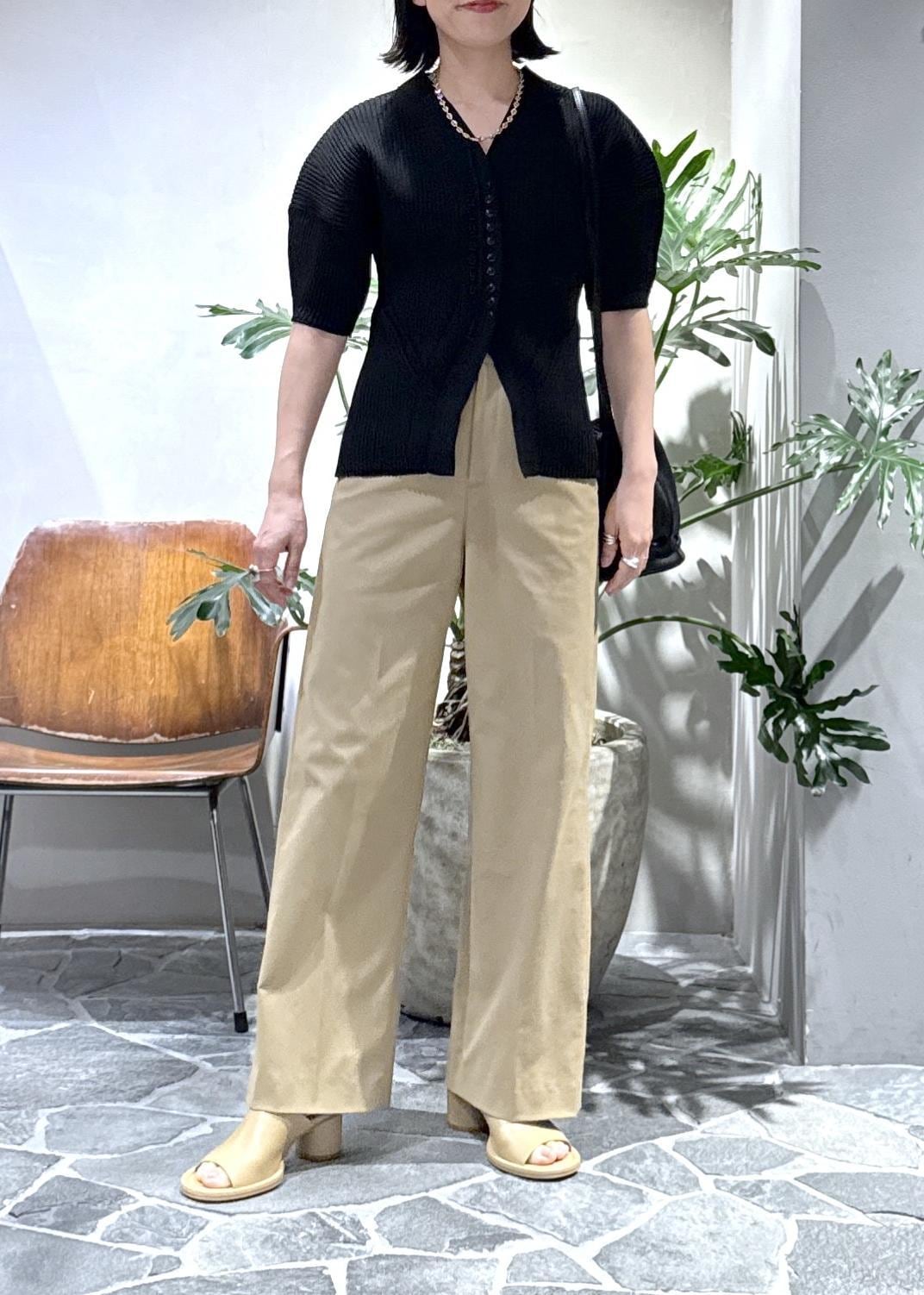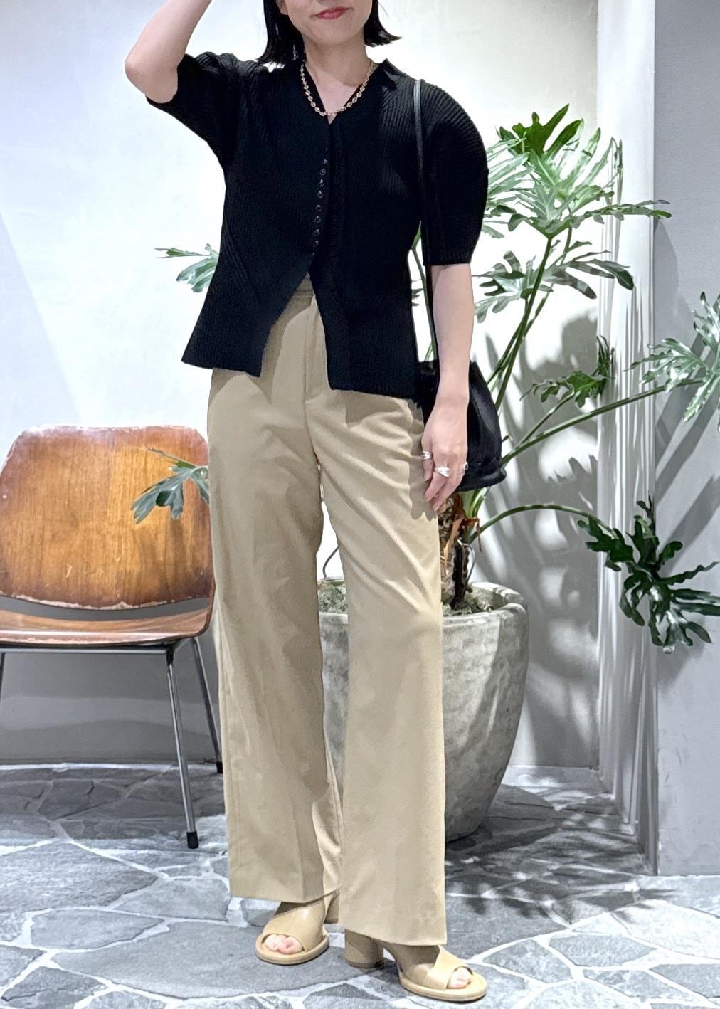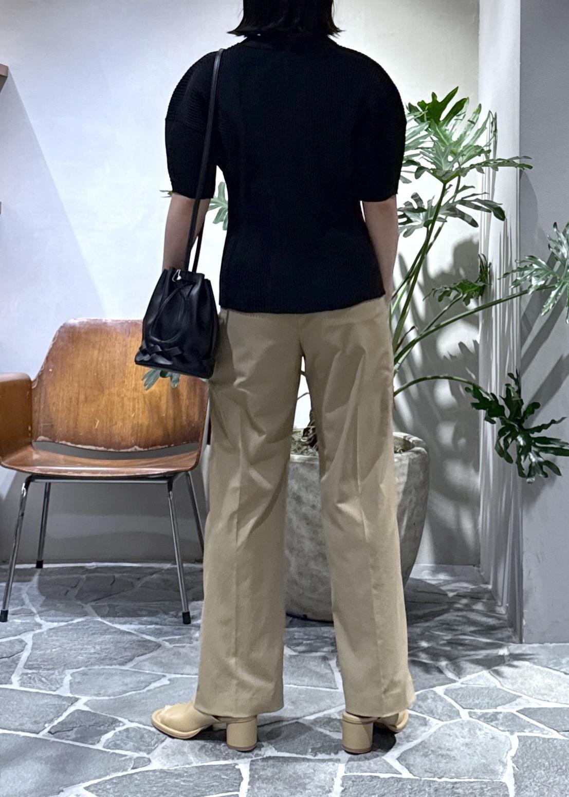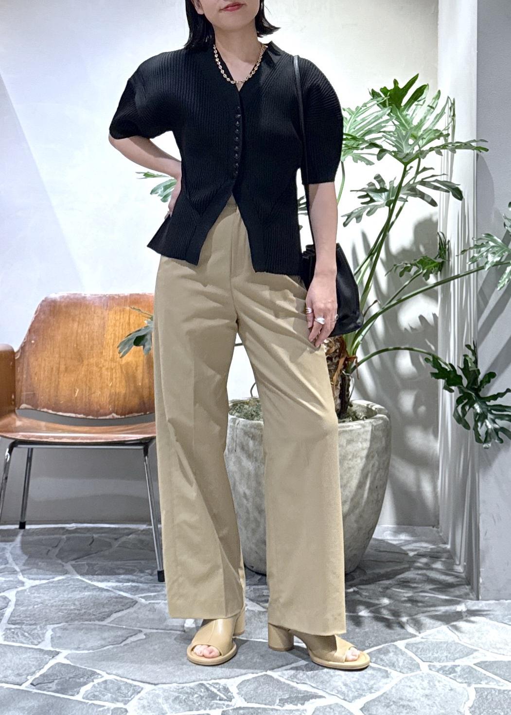 ハイウエストとストレートシルエットが綺麗なパンツで、サロンでも大人気のアイテムです。