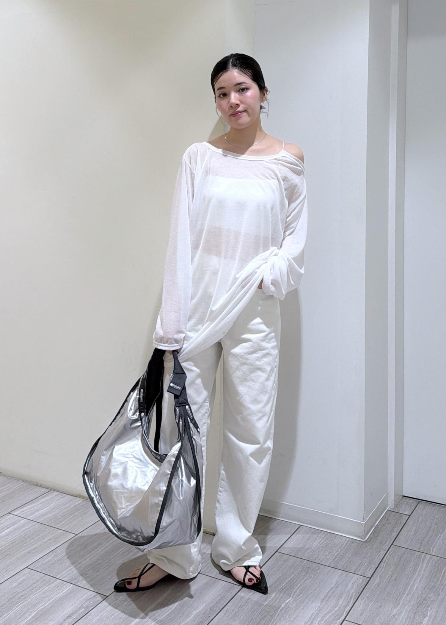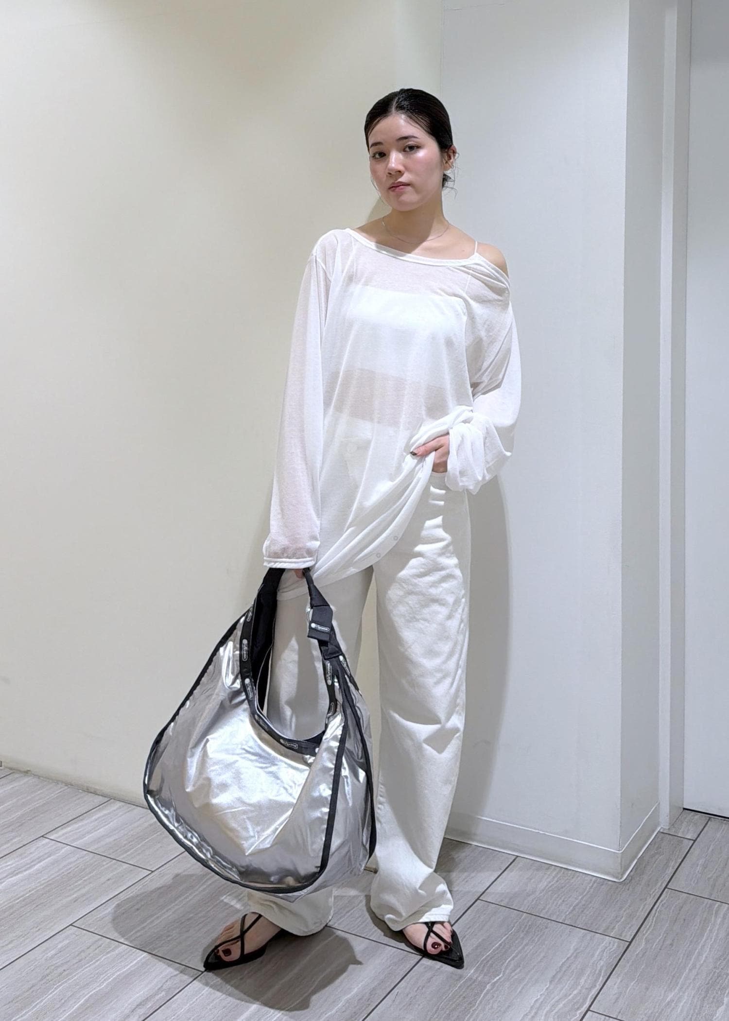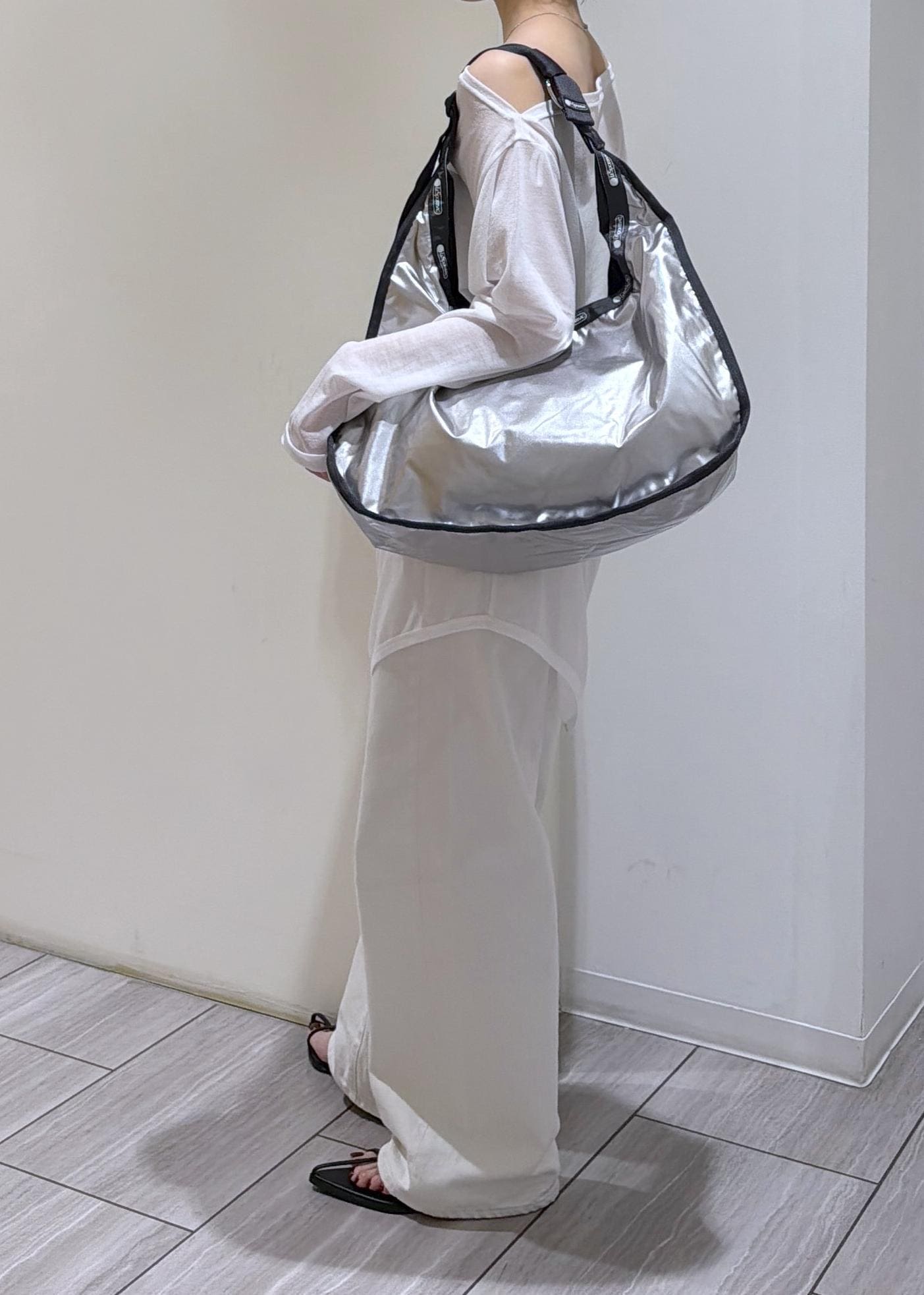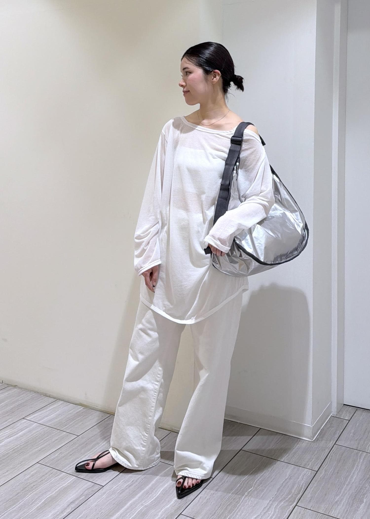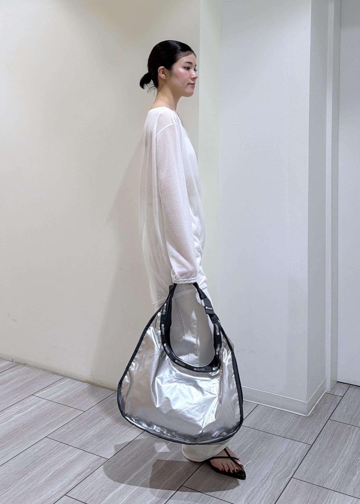シルバーカラーで、これからの季節のスタイリングのワンポイントにも◯