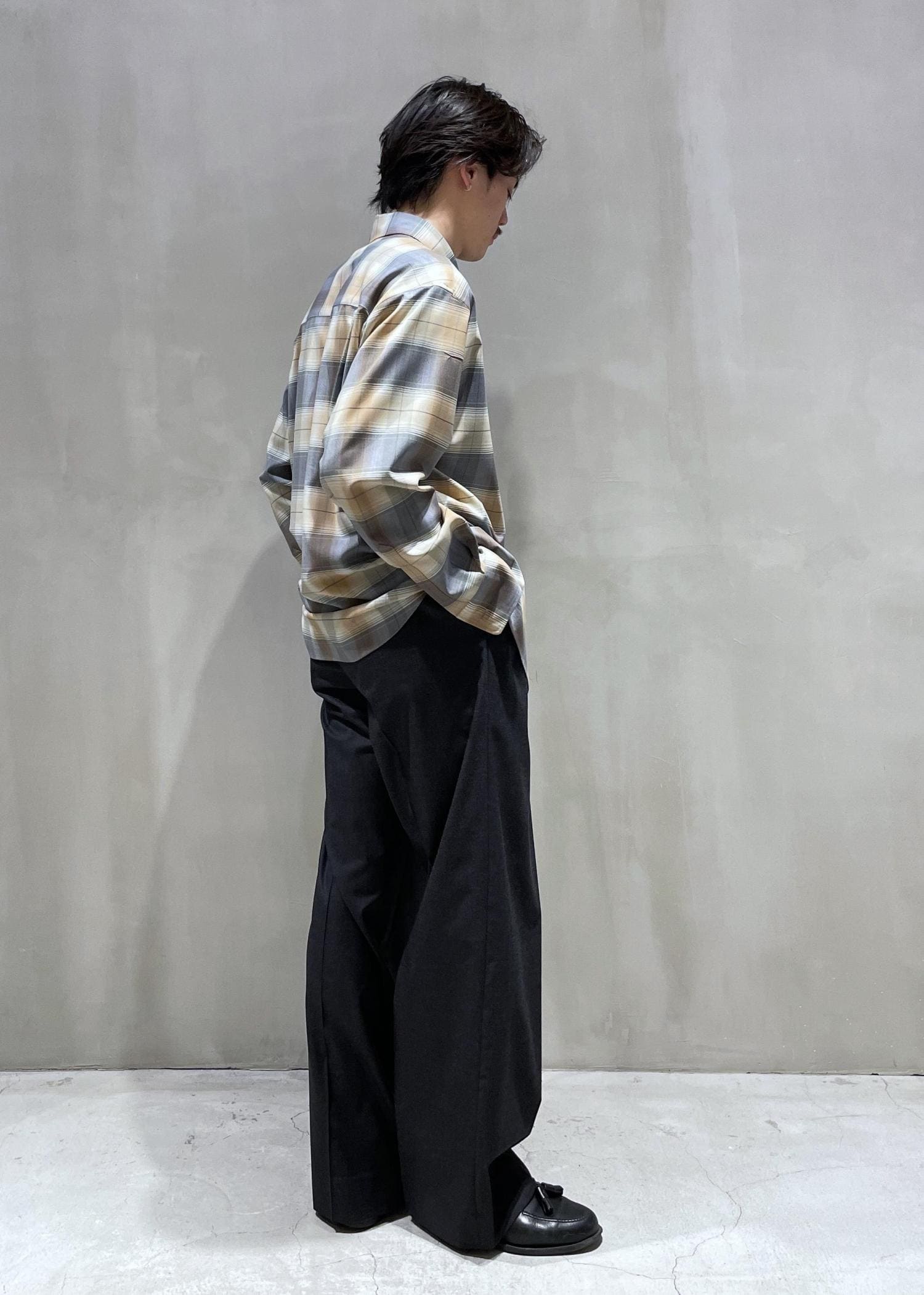 シルエットはワイドストレートで、着回しに使いやすいです。