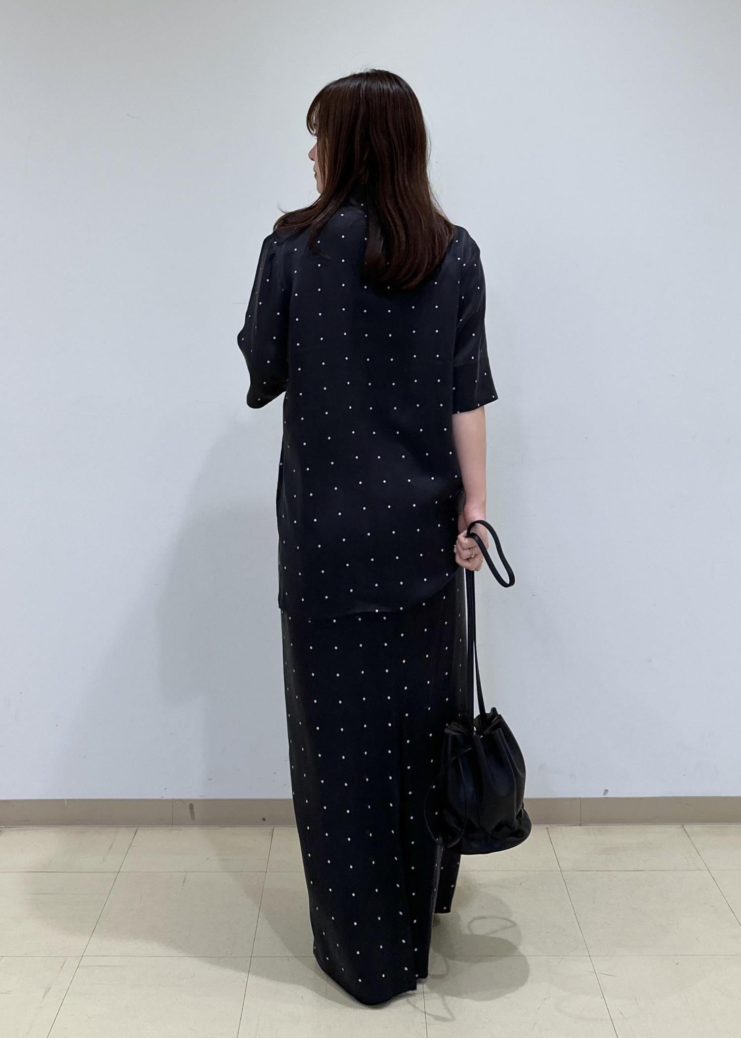 NEW!EMOELLE【EMOELLE】テーラーカラーシャツブラック系 / F¥26,950レビューキュプラで作られているのでとても柔らかく肌触りなめらかです。オーバーサイズなシャツ。