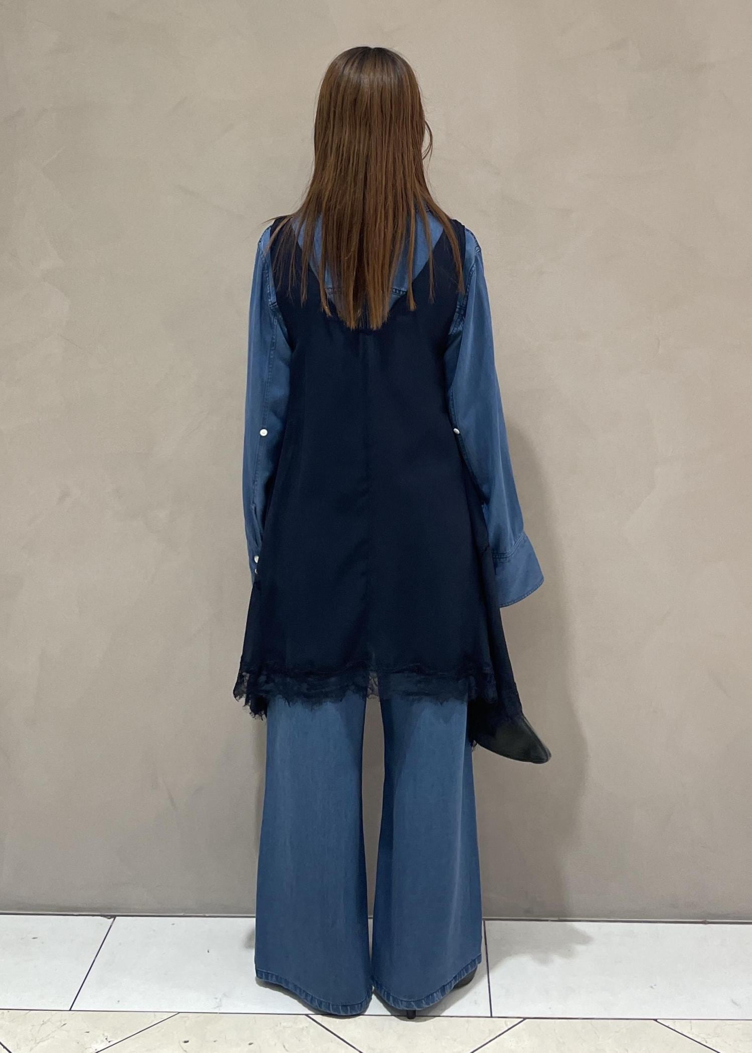 ADAM ET ROPÉ FEMMEヘムレースシアージレネイビー / F¥17,600レビュー丈が長めのシルエットなので、プルオーバーやシャツの上に重ねたりなど
