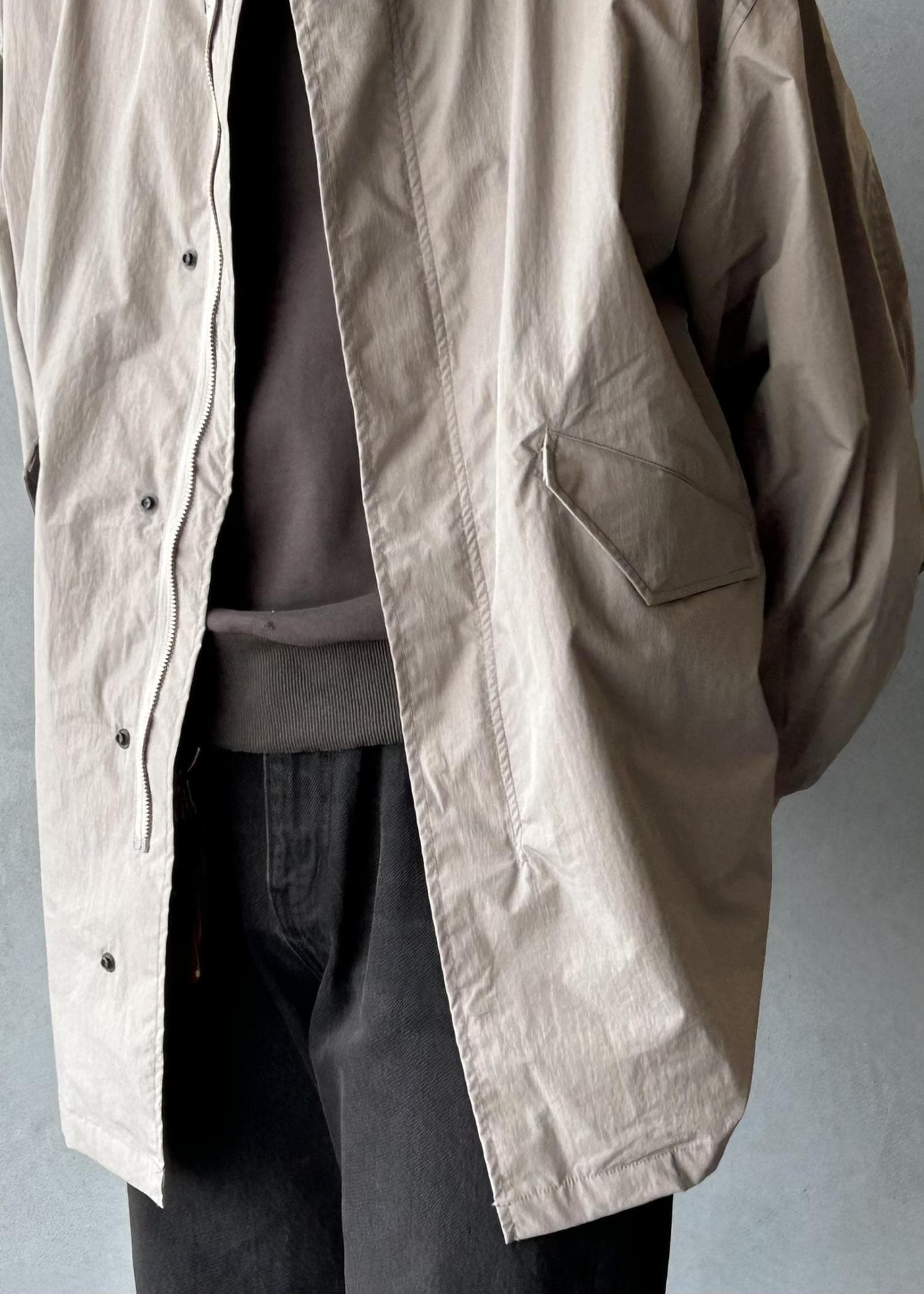 ADAM ET ROPÉ HOMMEナイロンタッサー ショートモッズコート / ロングシーズン着用可能グレー / M¥29,700レビューバサッと気軽に羽織れるスプリングコートです。身幅とアームホールにかなりゆとりあるサイジングでかなりオーバーな着こなしになります。ヴィンテージのような洗いかかった風合いが高級感ありコーディネートをより映えさせてくれます。
