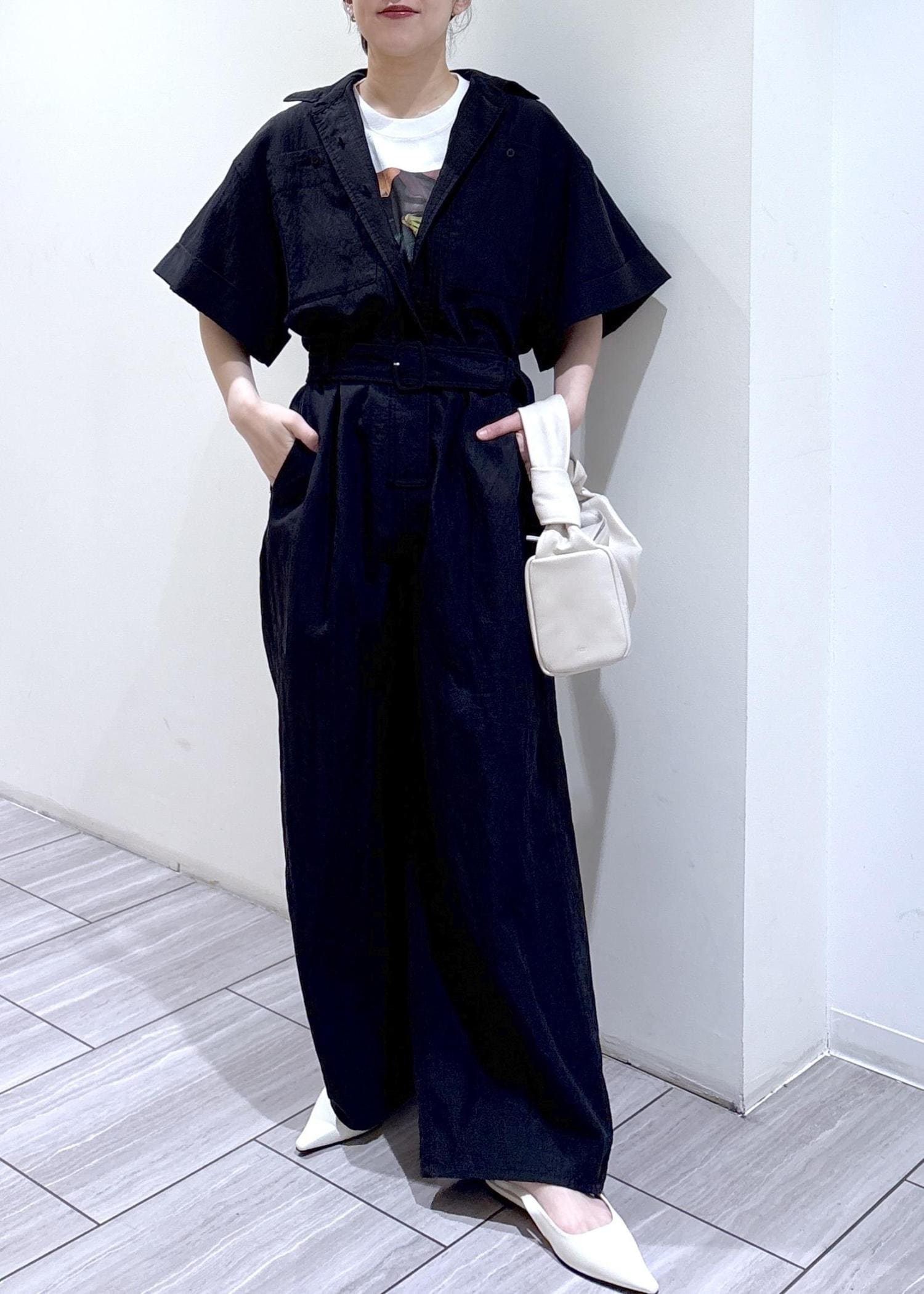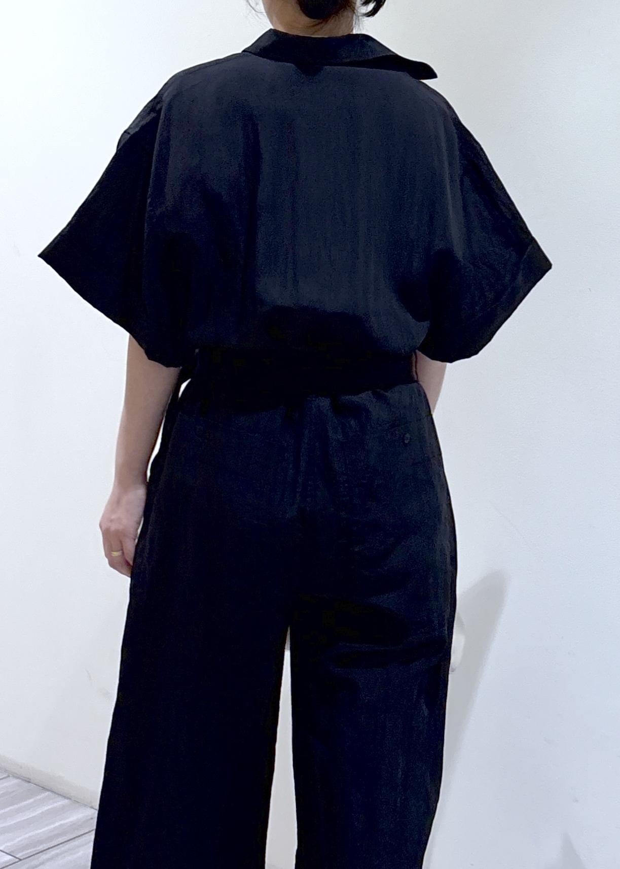 ADAM ET ROPÉ FEMMEシャツジャンプスーツブラック / 36¥29,700レビューハリ感のある生地で、肌離れするシルエット。