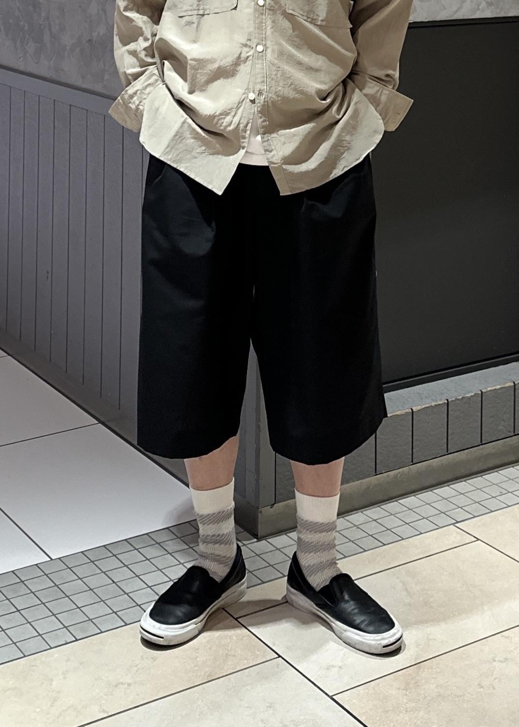 丈長めのショーツ。少年感が出ず大人っぽい雰囲気。薄い生地で涼しいです。薄いけど、トロトロとはしていなく、立体感のあるシルエットです。夏はもちろん、春と秋にも長袖やスウェット、ジャケットなどと合わせてお召しいただけます。 -