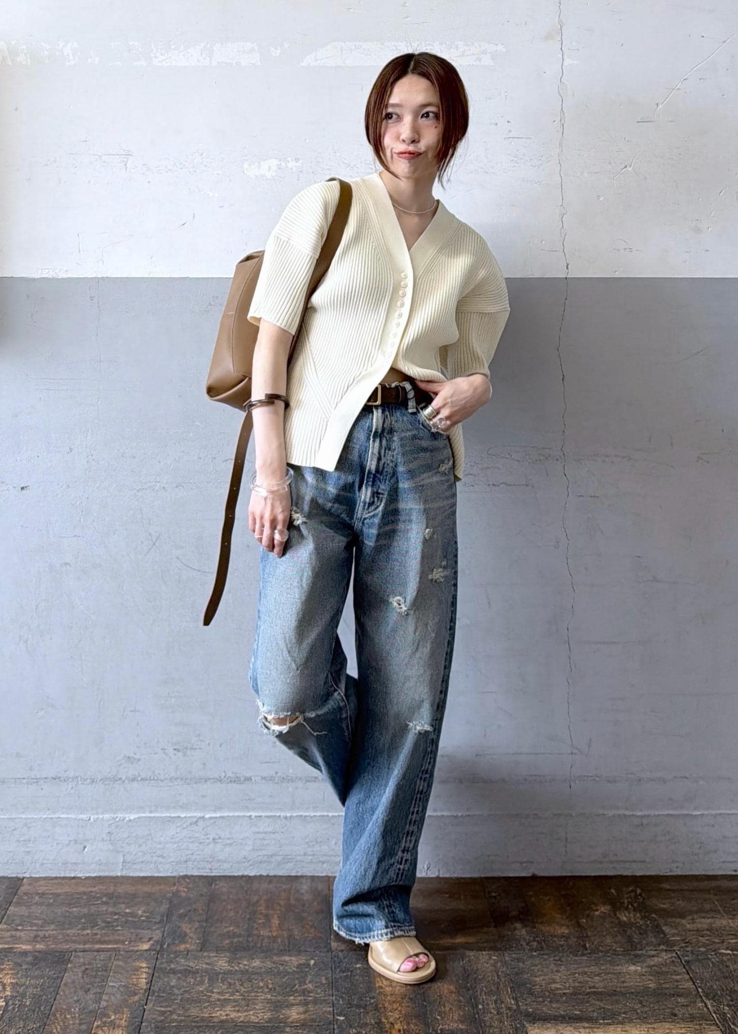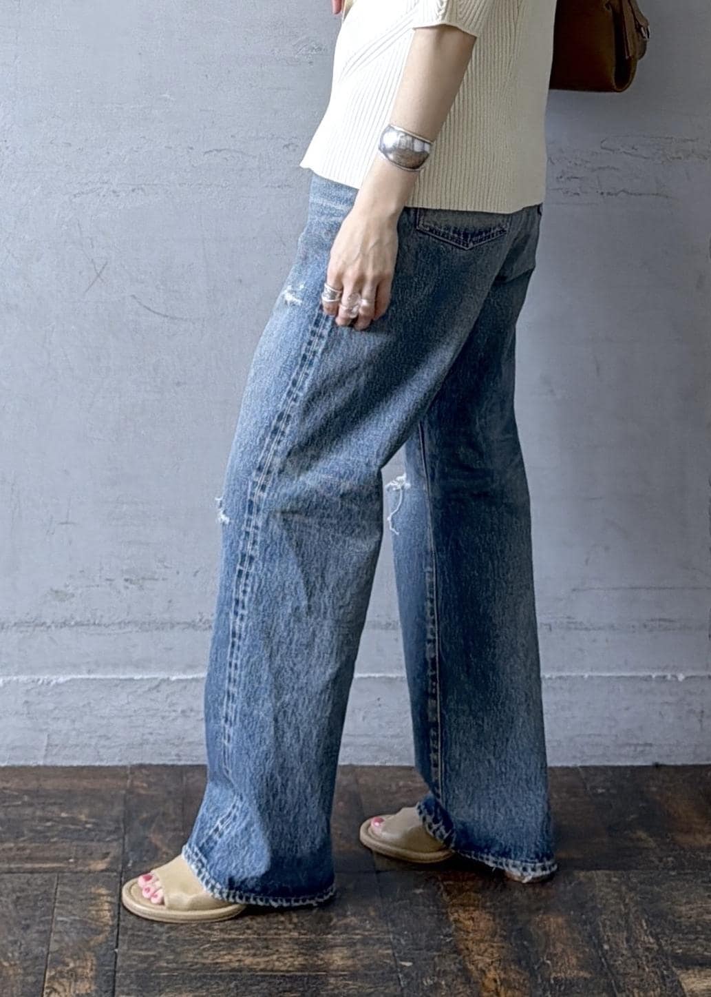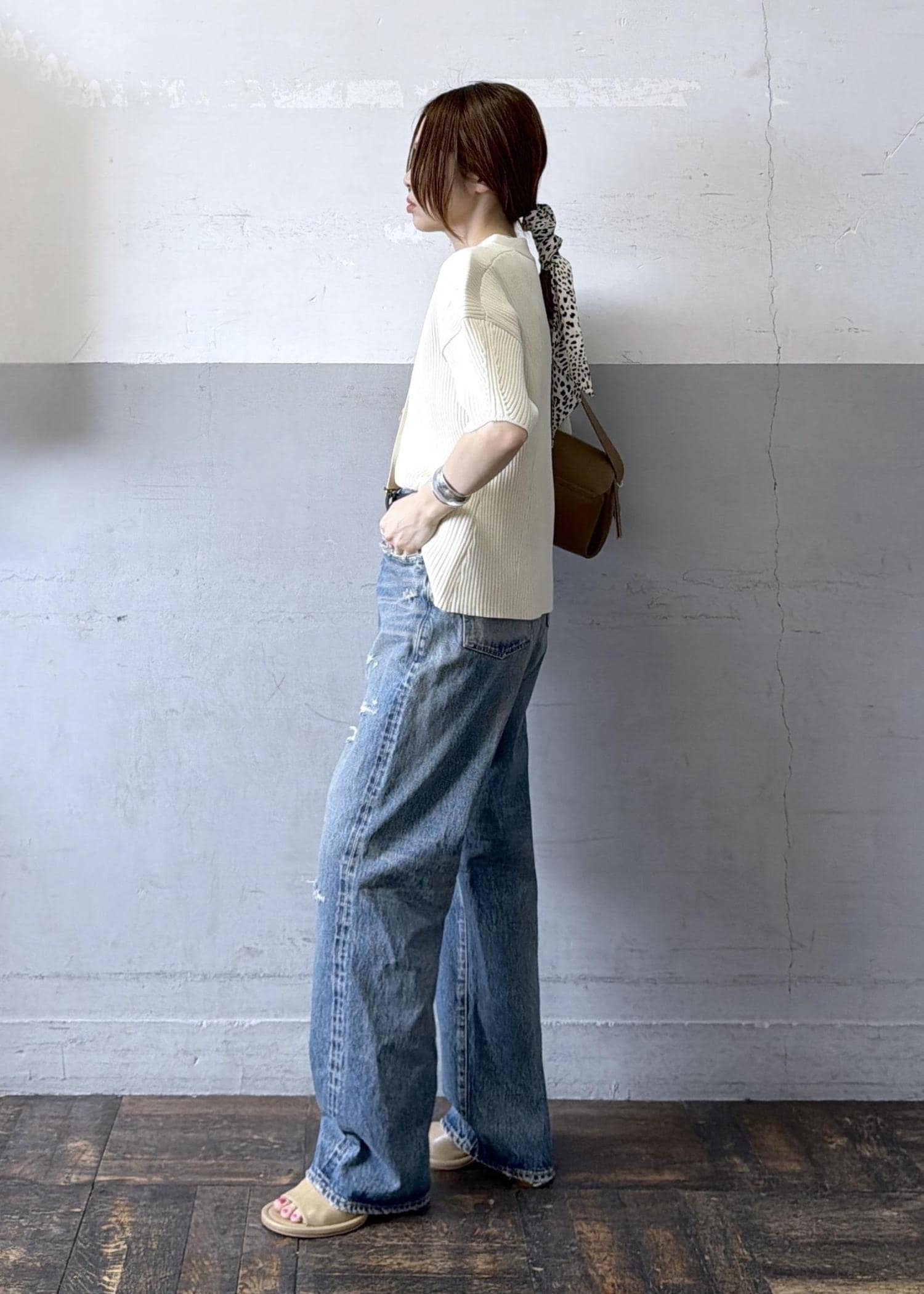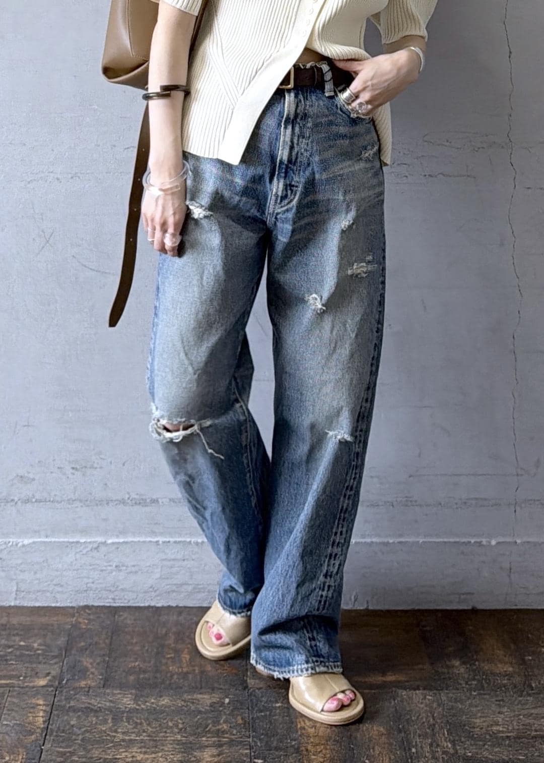 今回はダメージデニムでより抜け感を。