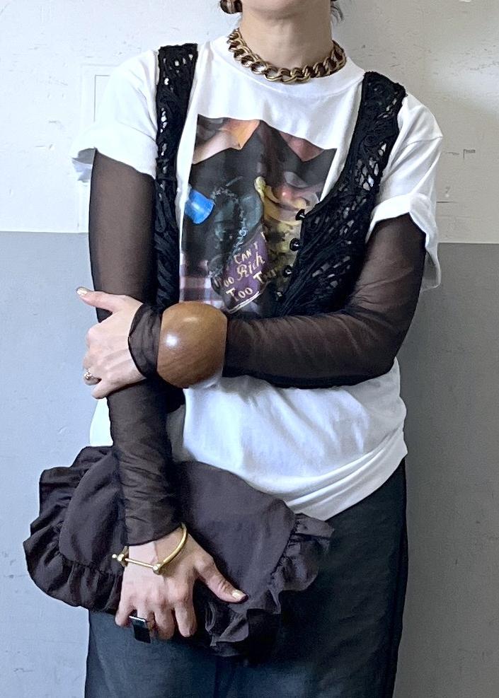 Tシャツやデニムを重ねたレイヤードスタイル。