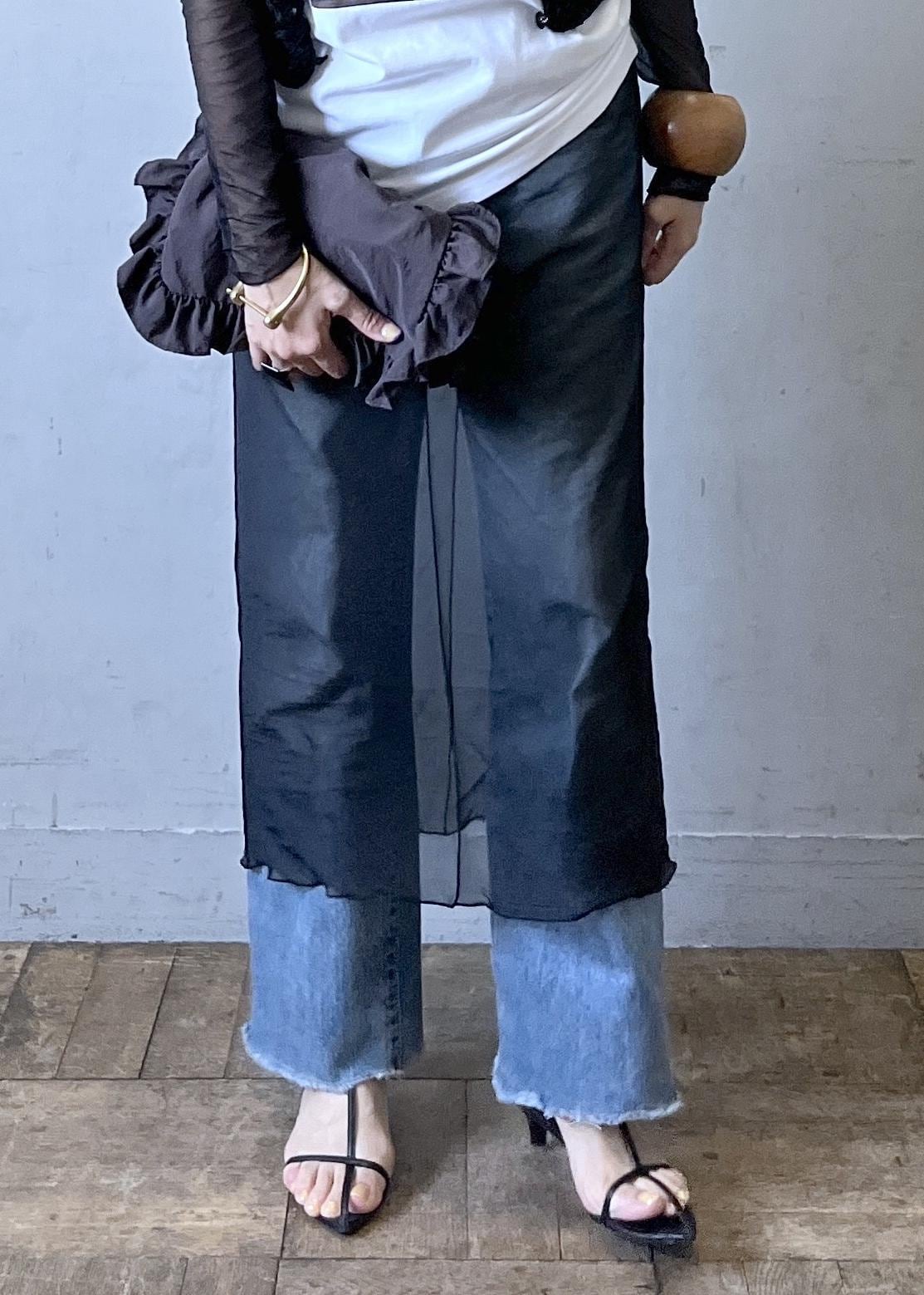 縦のラインを強調しつつスタイリングに奥行きをプラス。
