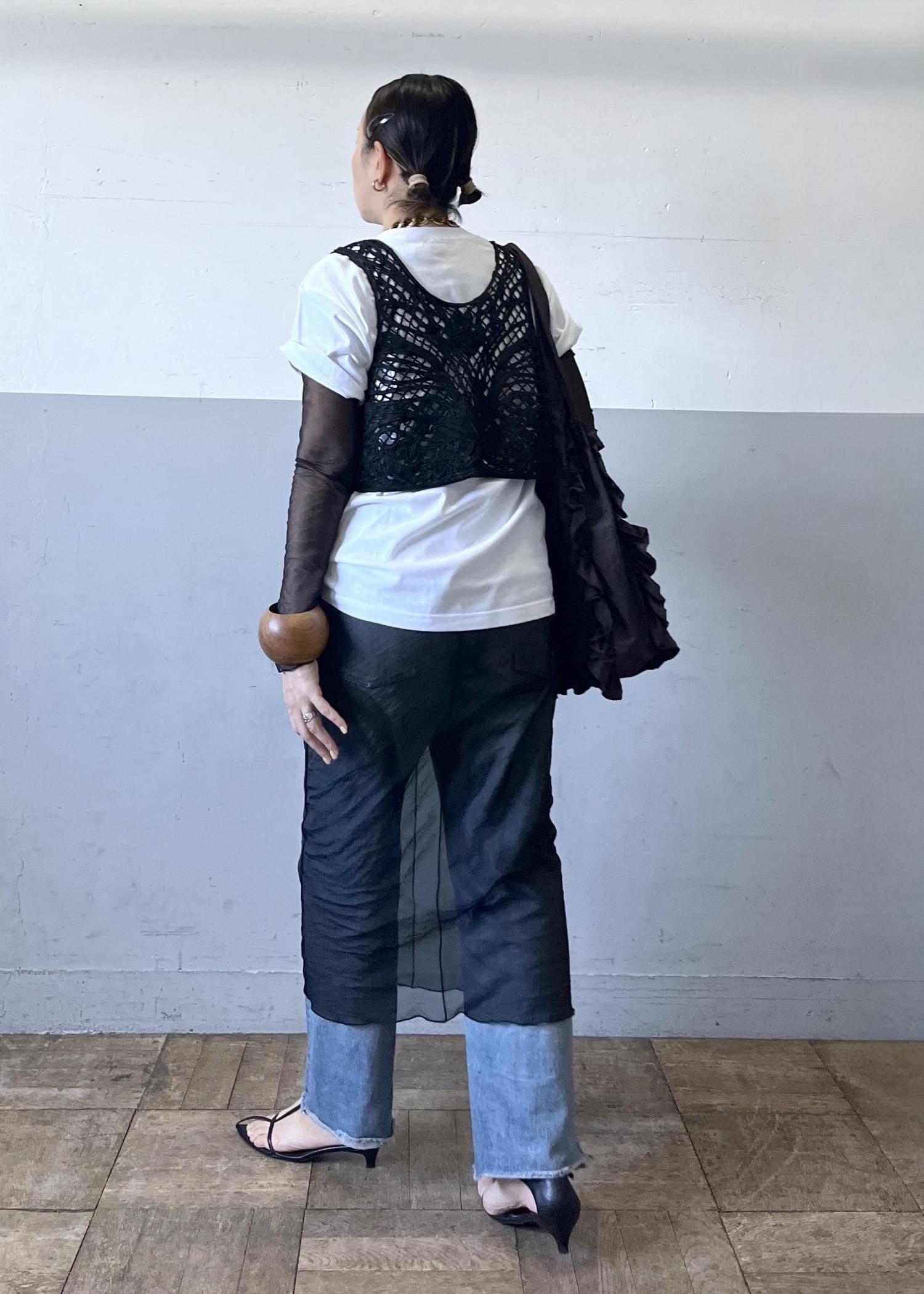 ADAM ET ROPÉ FEMMEコードレースタンクジレブラック / F¥17,600レビューコードレースがちょうど良いアクセントになるジレはTシャツやタンクトップ、ワンピースにプラスするだけで今年風に。雰囲気を変えてくれるアクセサリーのような存在です^ ^