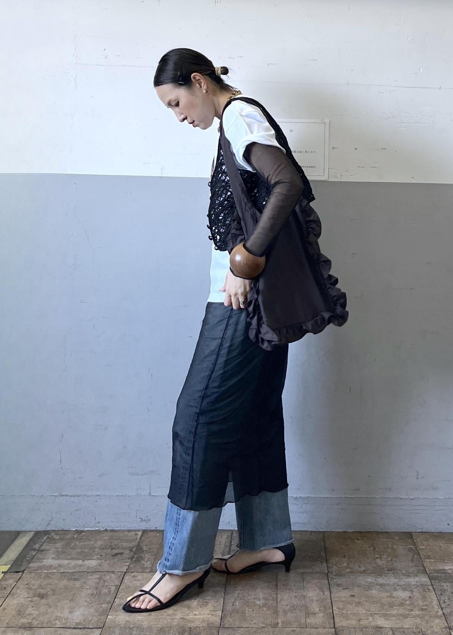 デニムとのレイヤードで程よくラフな印象に仕上げました。