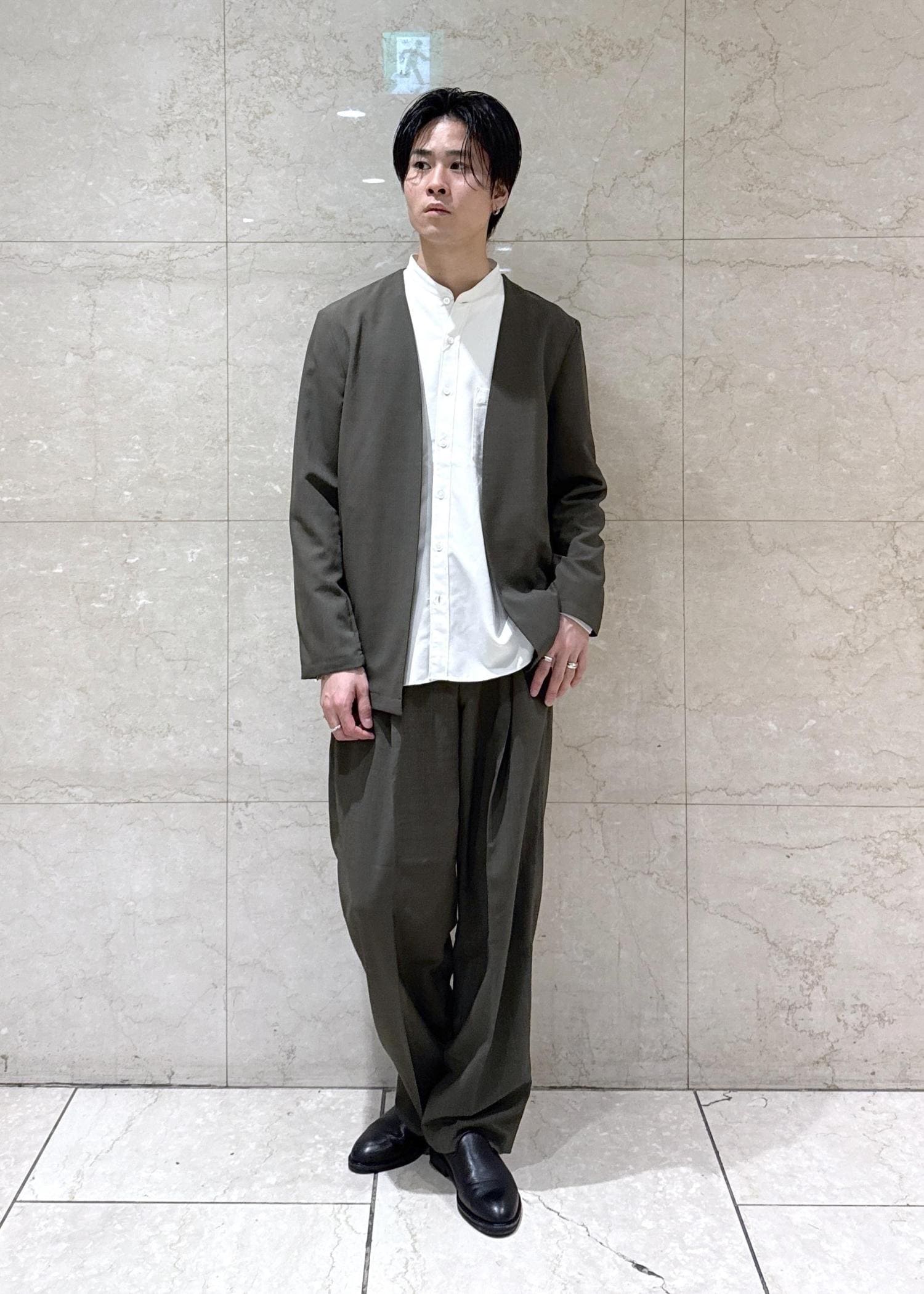 ADAM ET ROPÉ HOMME【COVEROSS/カバロス】ノーカラージャケット×イージースラックス セットアップ / ロングシーズン着用可能カーキ / M¥27,500