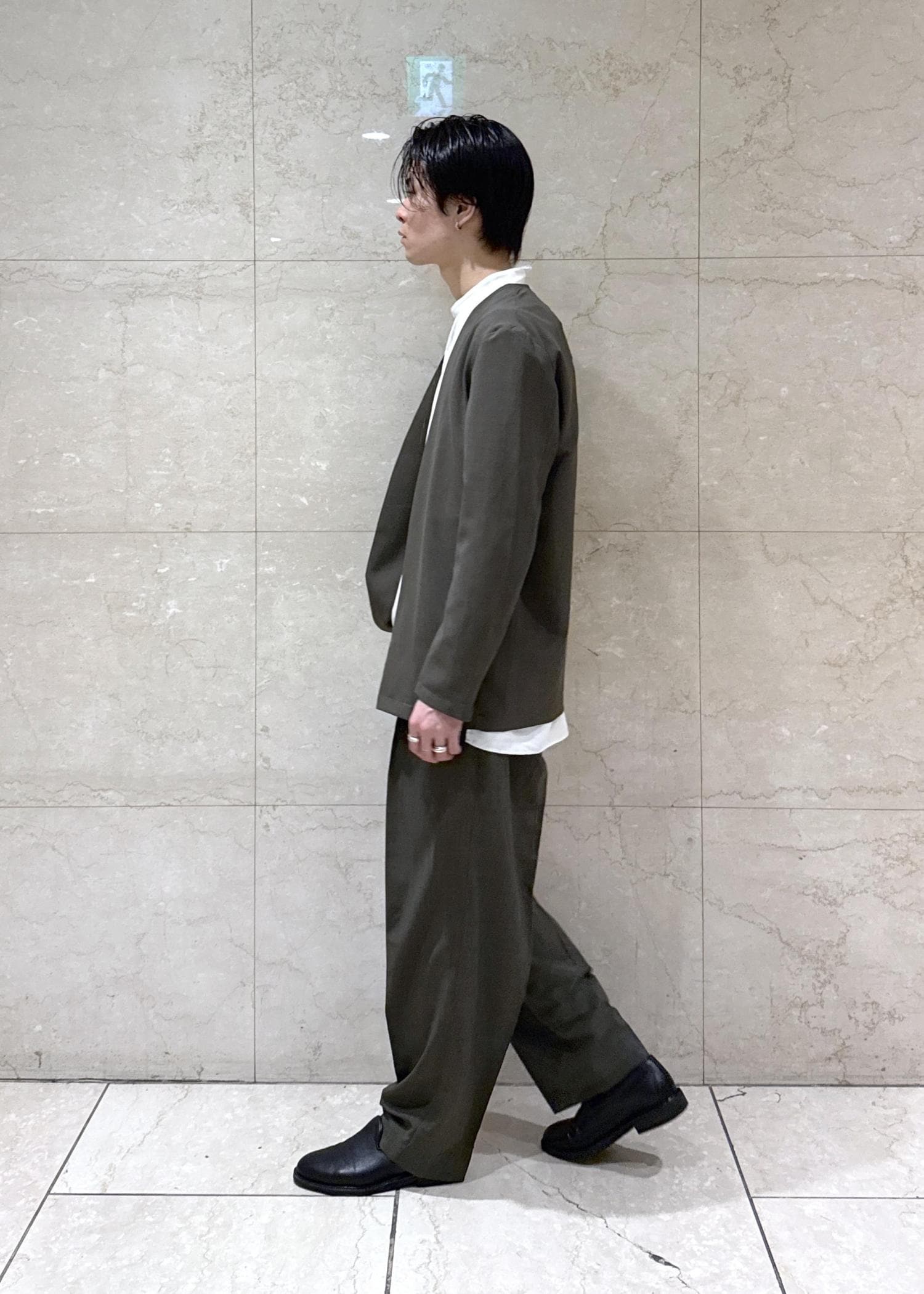 セットアップのパンツと生地感は同じですが、シルエットが違い、シーンによって使い分けするのがおすすめです。