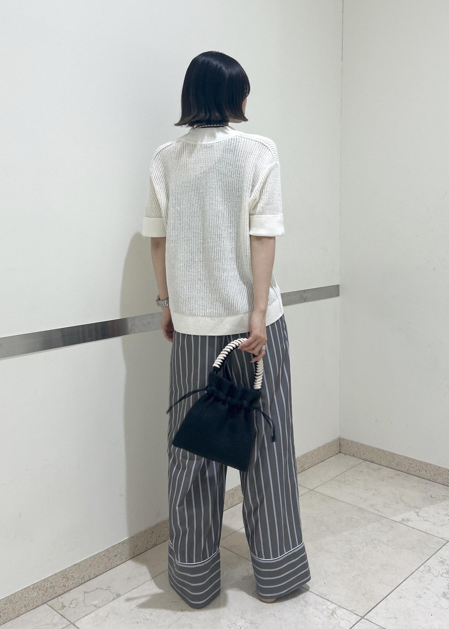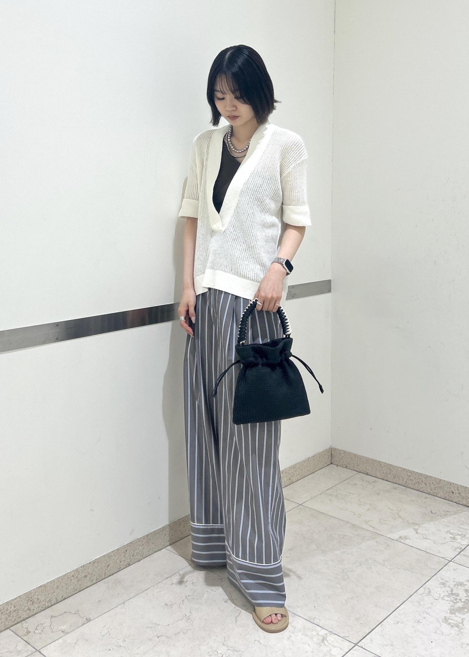 トップスがシンプルなスタイルなので、ボトムにストライプパンツを合わせて、爽やかなスタイリングにしました♪