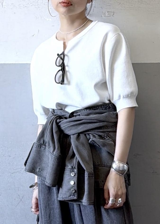 2WAYキーネックハーフスリーブニット
