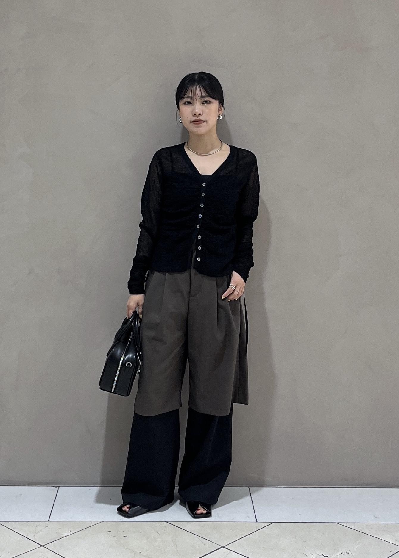 シアーカーディガンは今からの時期だと1枚できてもかわいいですし、ジャケットのインナー使いもおすすめです!