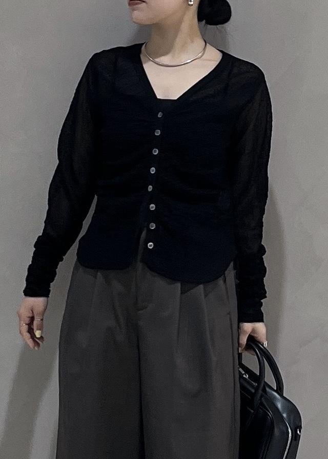 ADAM ET ROPÉ FEMMEクレープリンクスギャザーシアーカーディガンブラック / F¥17,600レビュータイトめなサイズ感でした!