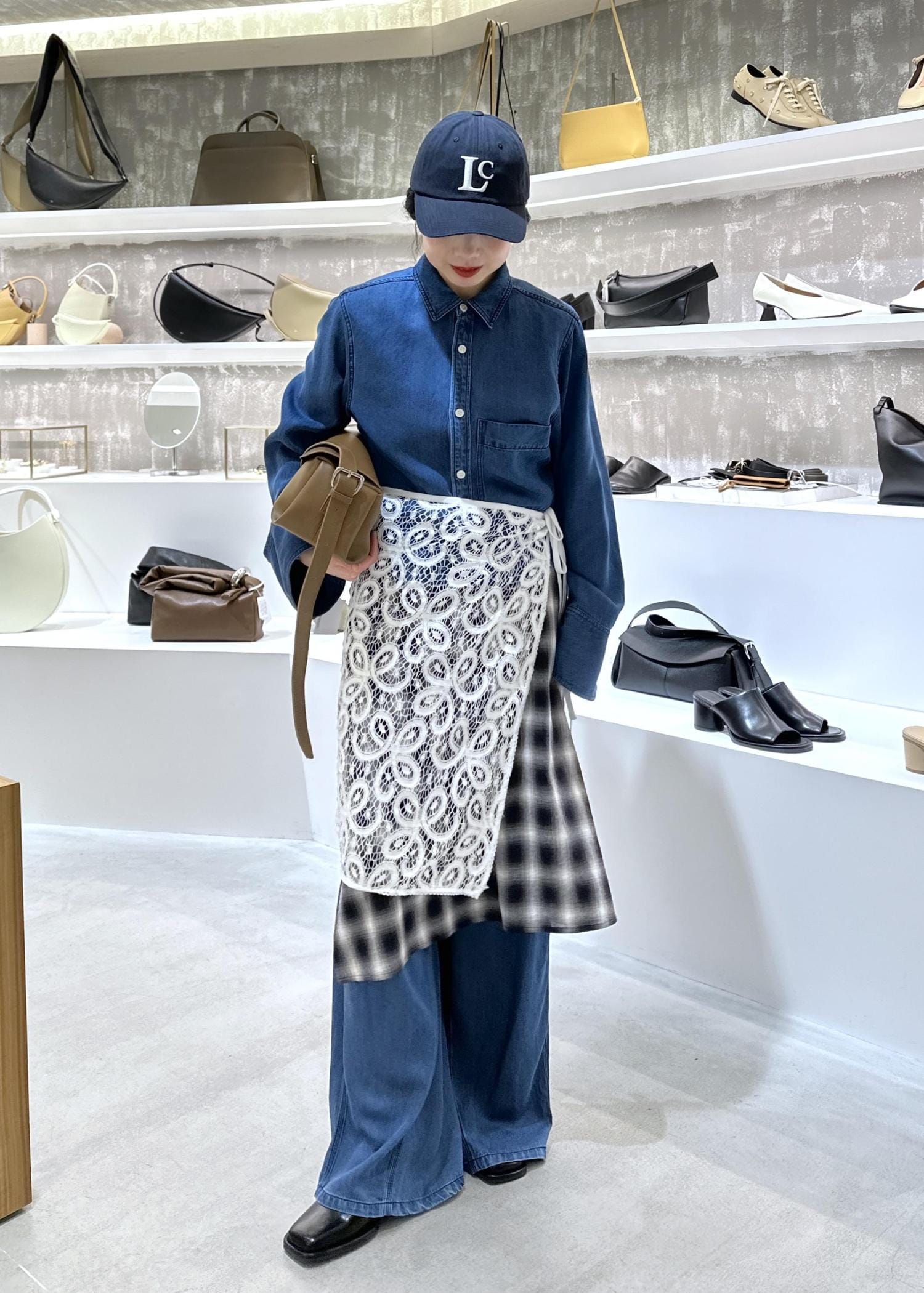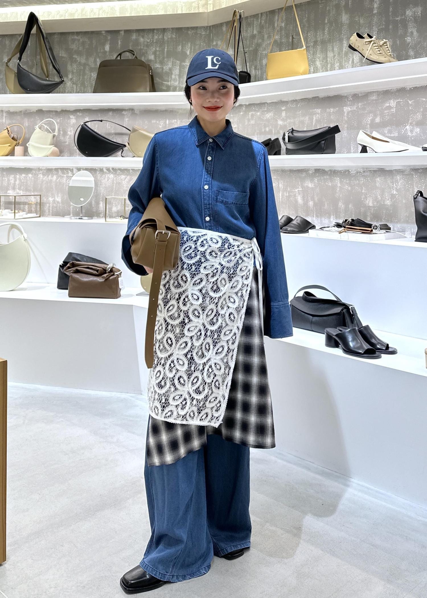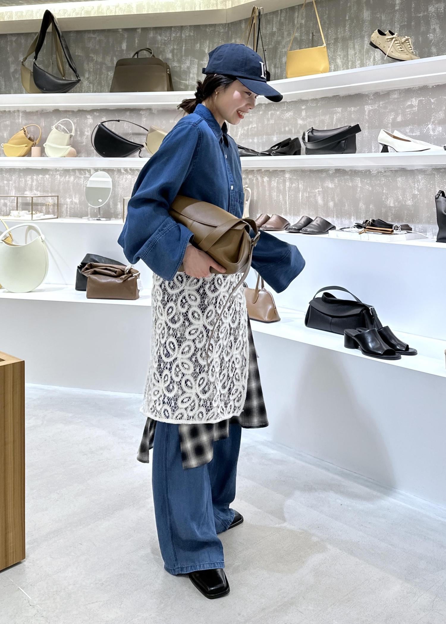 デニムセットアップのレイヤードスタイル