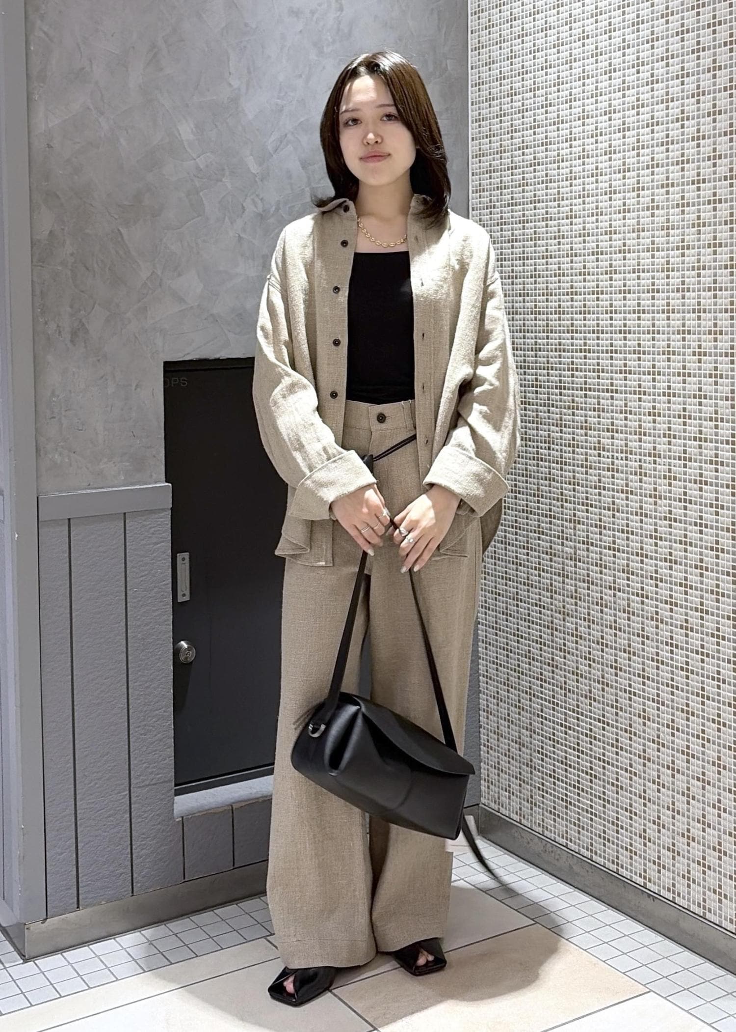 ADAM ET ROPÉ FEMME【一部WEB限定カラー】エンブロイダリーコンビシャツブラック / F¥26,400レビュー腰に巻いてコーディネートにプラスするのも可愛いです。