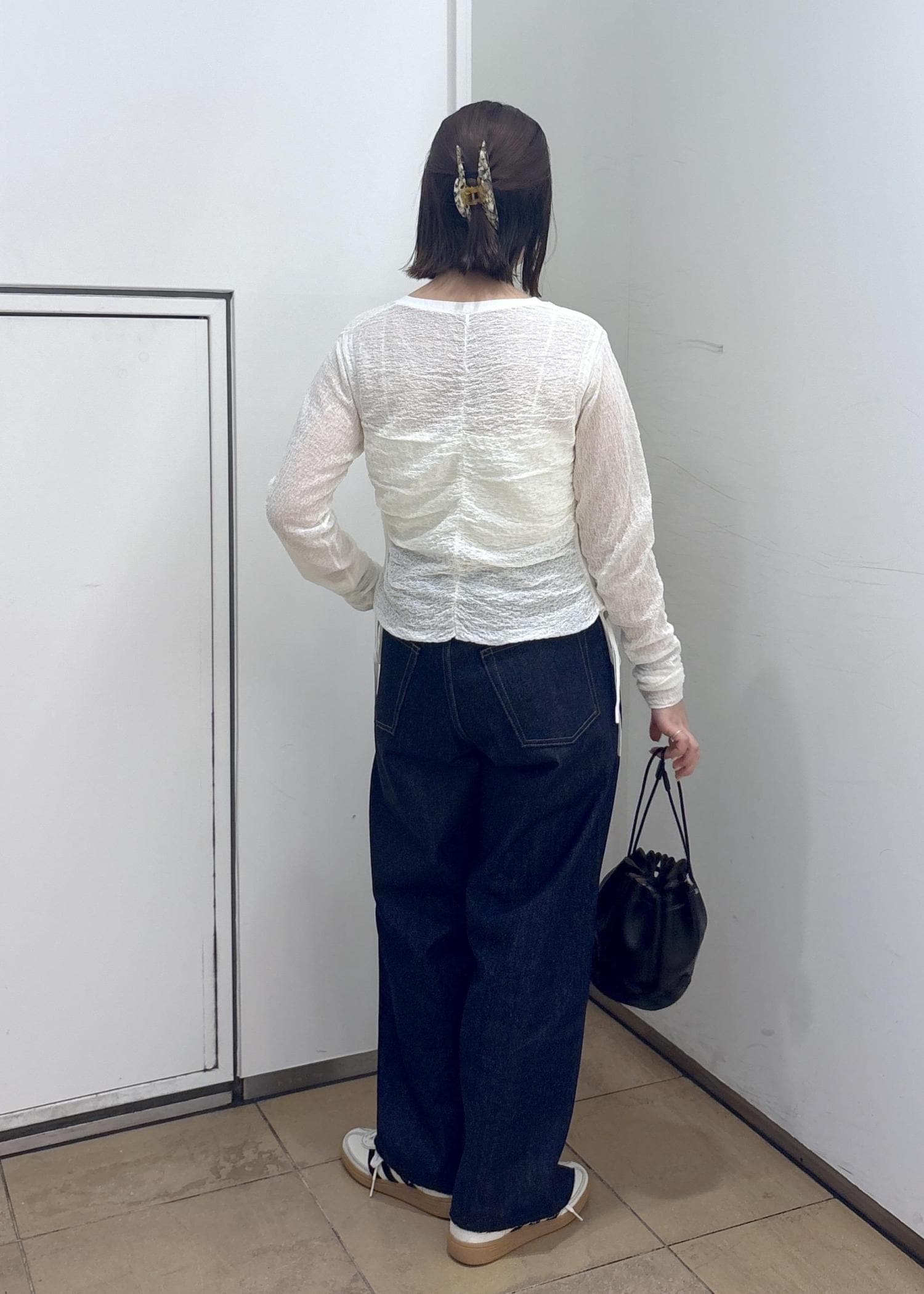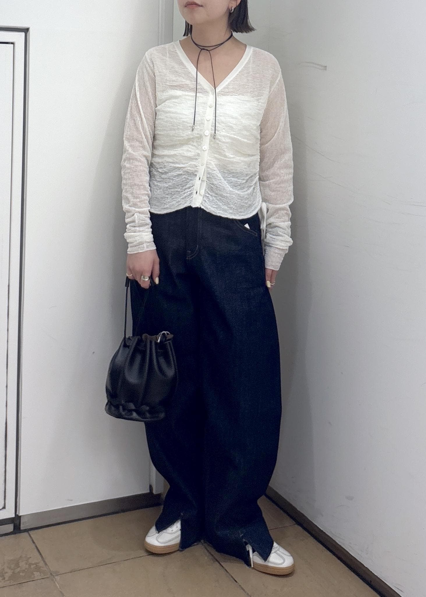 ADAM ET ROPÉ FEMMEクレープリンクスギャザーシアーカーディガンオフホワイト / F¥17,600レビューシアー感があり、夏の羽織ものとして最適です◎