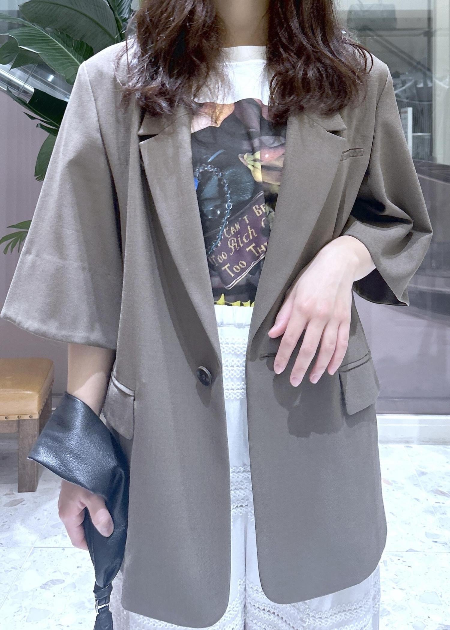 NEW!EMOELLE【EMOELLE】ハーフスリーブジャケットブラウン系 / 36¥49,500レビューさらりとしたとても着やすい生地感です。肩パッドは取り外し可能なのでゆるく着たい時は取るのがおすすめです!