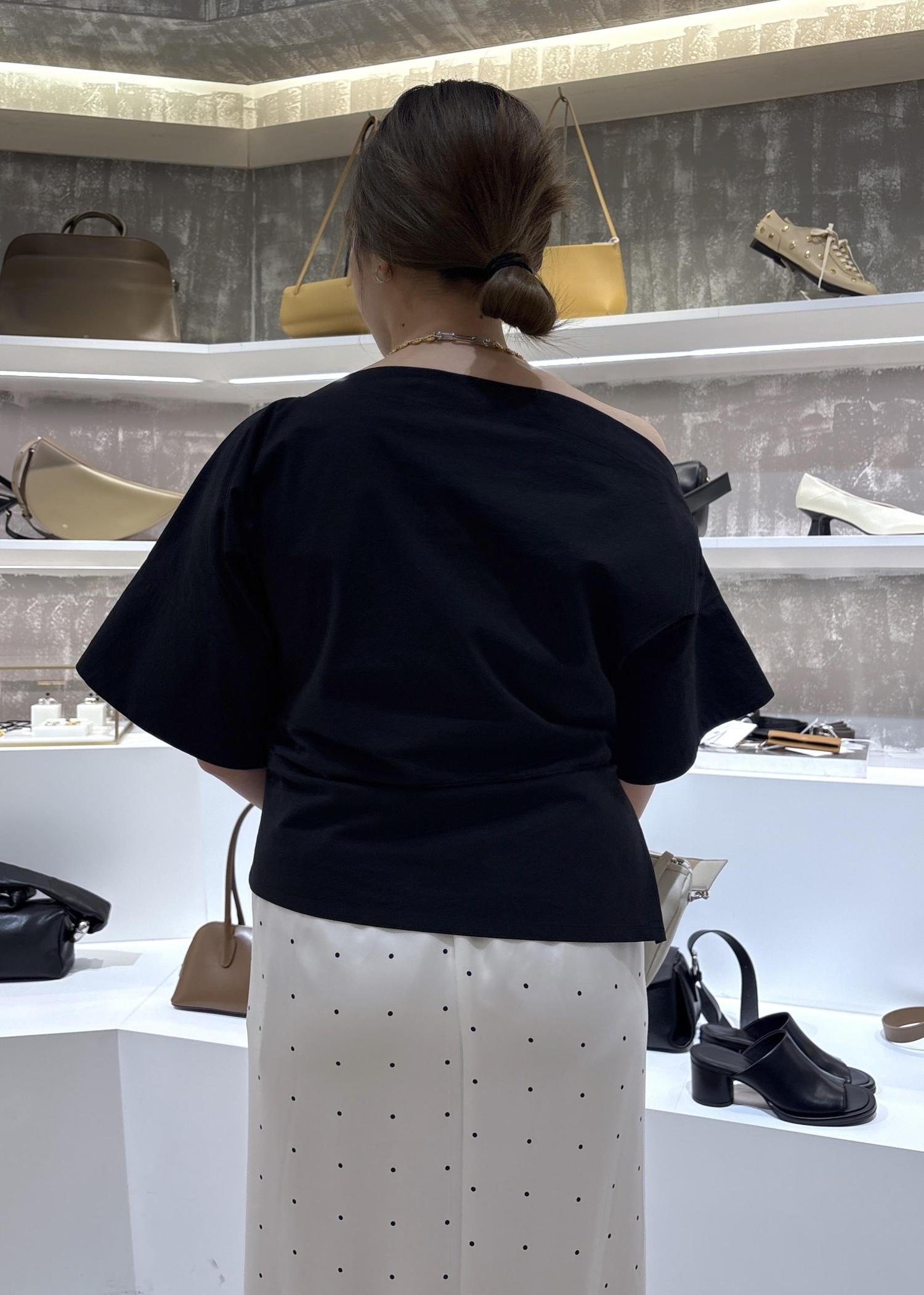 NEW!EMOELLE【EMOELLE】アシメスタイルトップスブラック / F¥24,200レビューハリ感のある素材です。