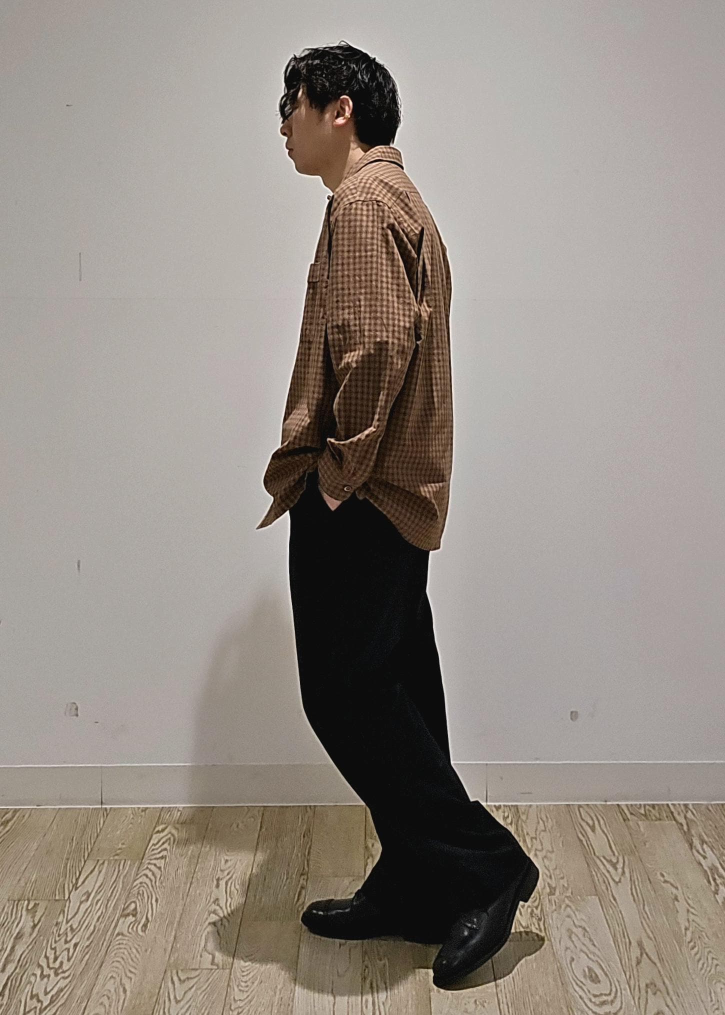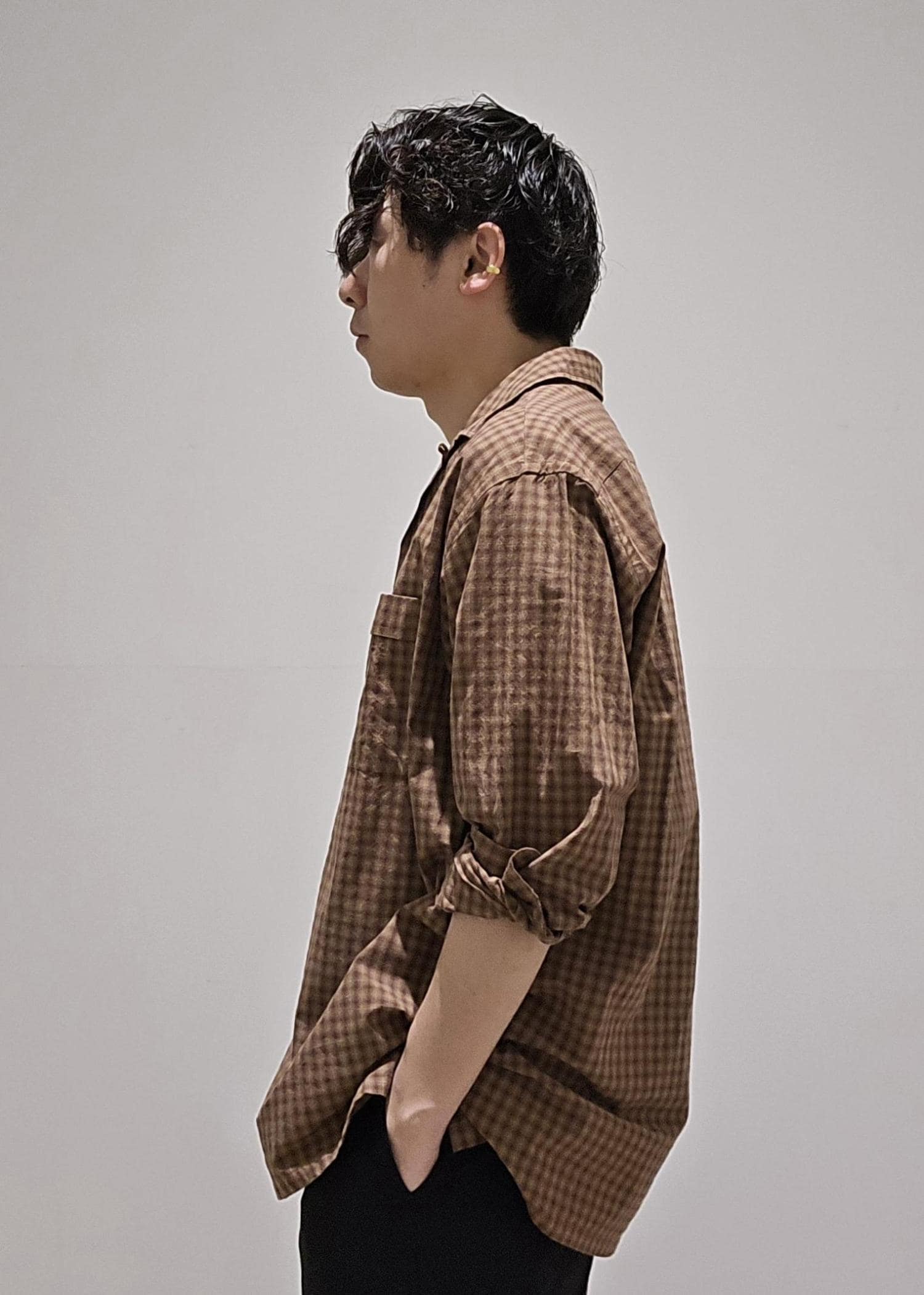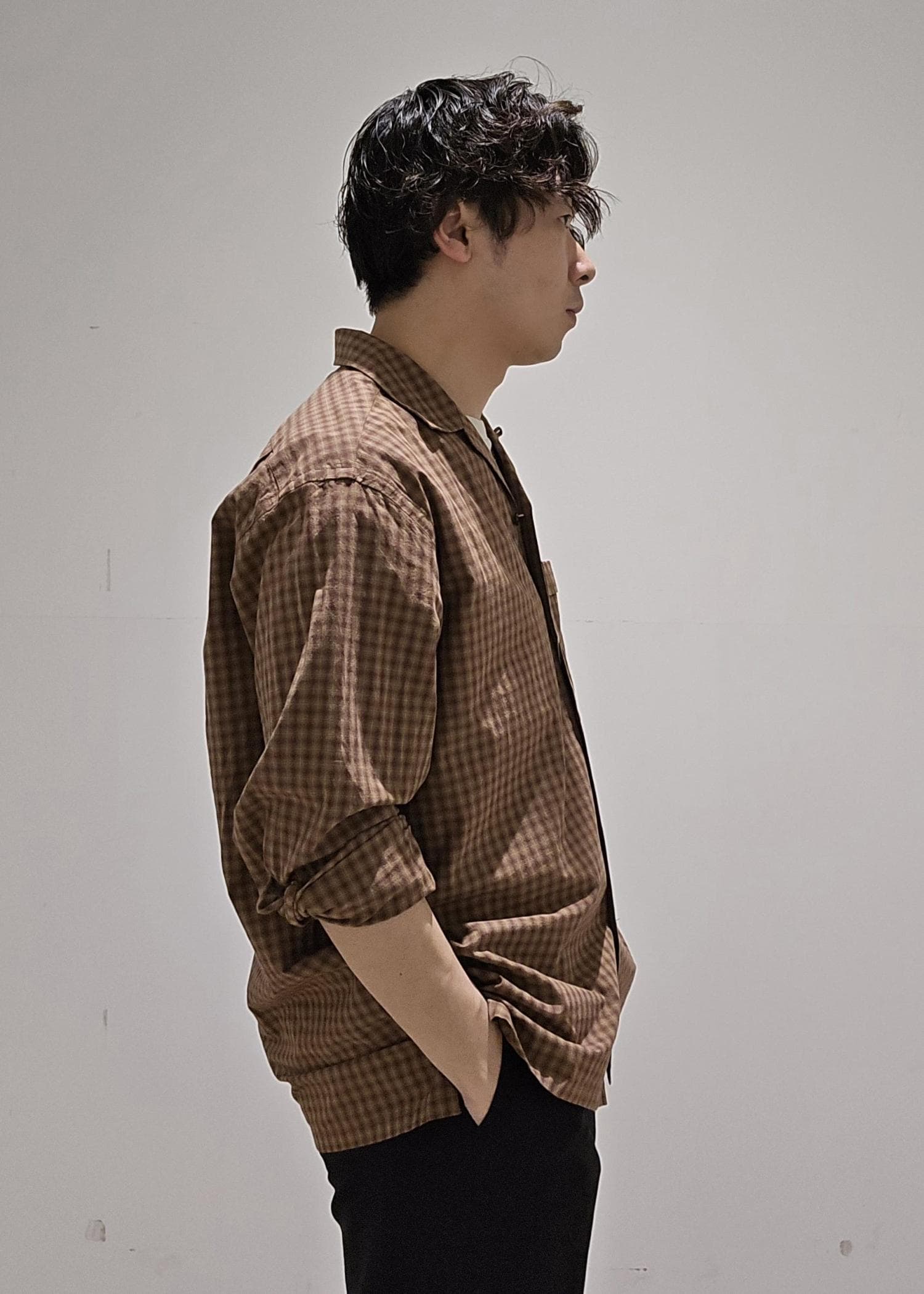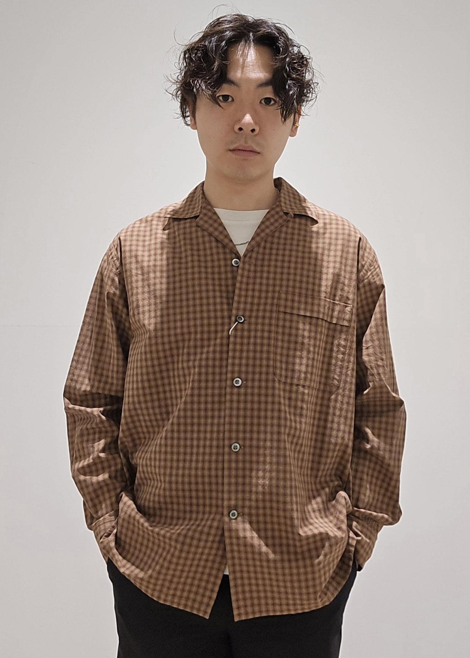 WILD LIFE TAILORCHECK OPEN COLLAR SHIRTダークブラウン / M¥23,100
