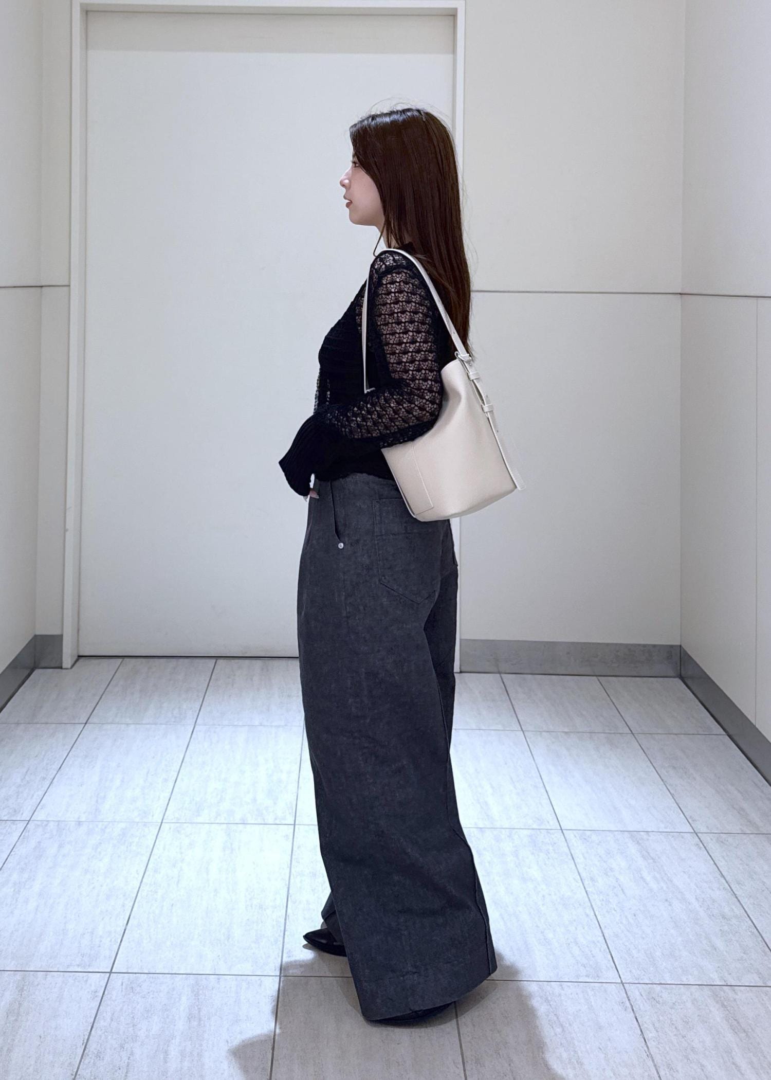 NEW!EMOELLE【EMOELLE】2タックデニムパンツチャコール / 34¥26,400レビュー34でもヒールを合わせてギリギリはけます!少し固めの質感がきれいめコーデにもおすすめです。