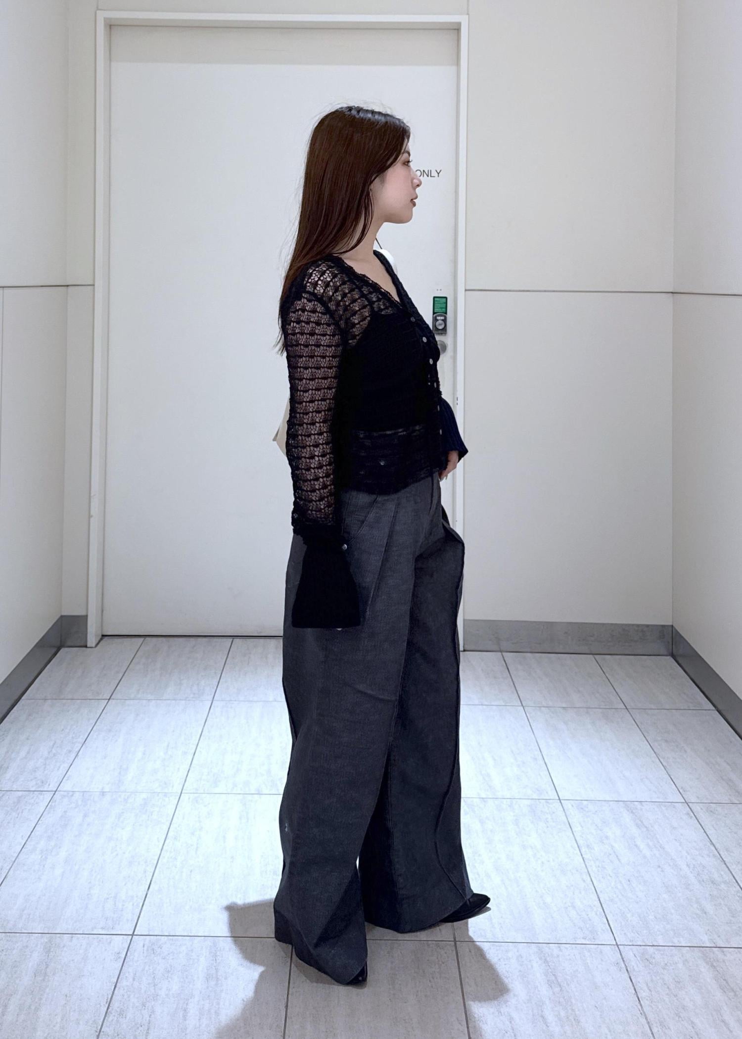 NEW!EMOELLE【EMOELLE】透かし編みカーディガンブラック / F¥17,600レビュー透け感があり黒でも重たく見えません。レイヤード出来るほど薄く通気性も良いのでこれからのシーズンにぴったりです!丈感は短く低身長さんにも◎