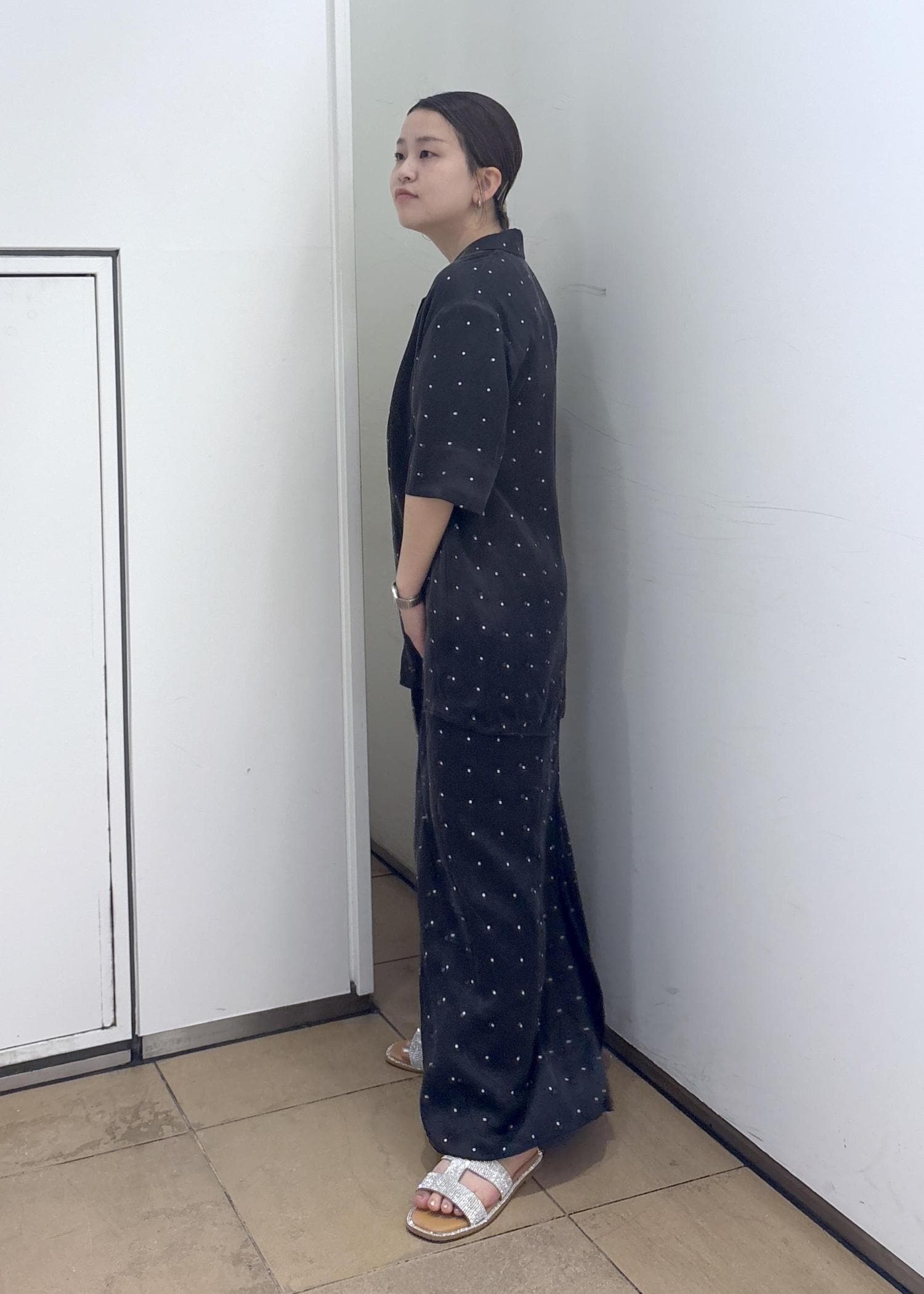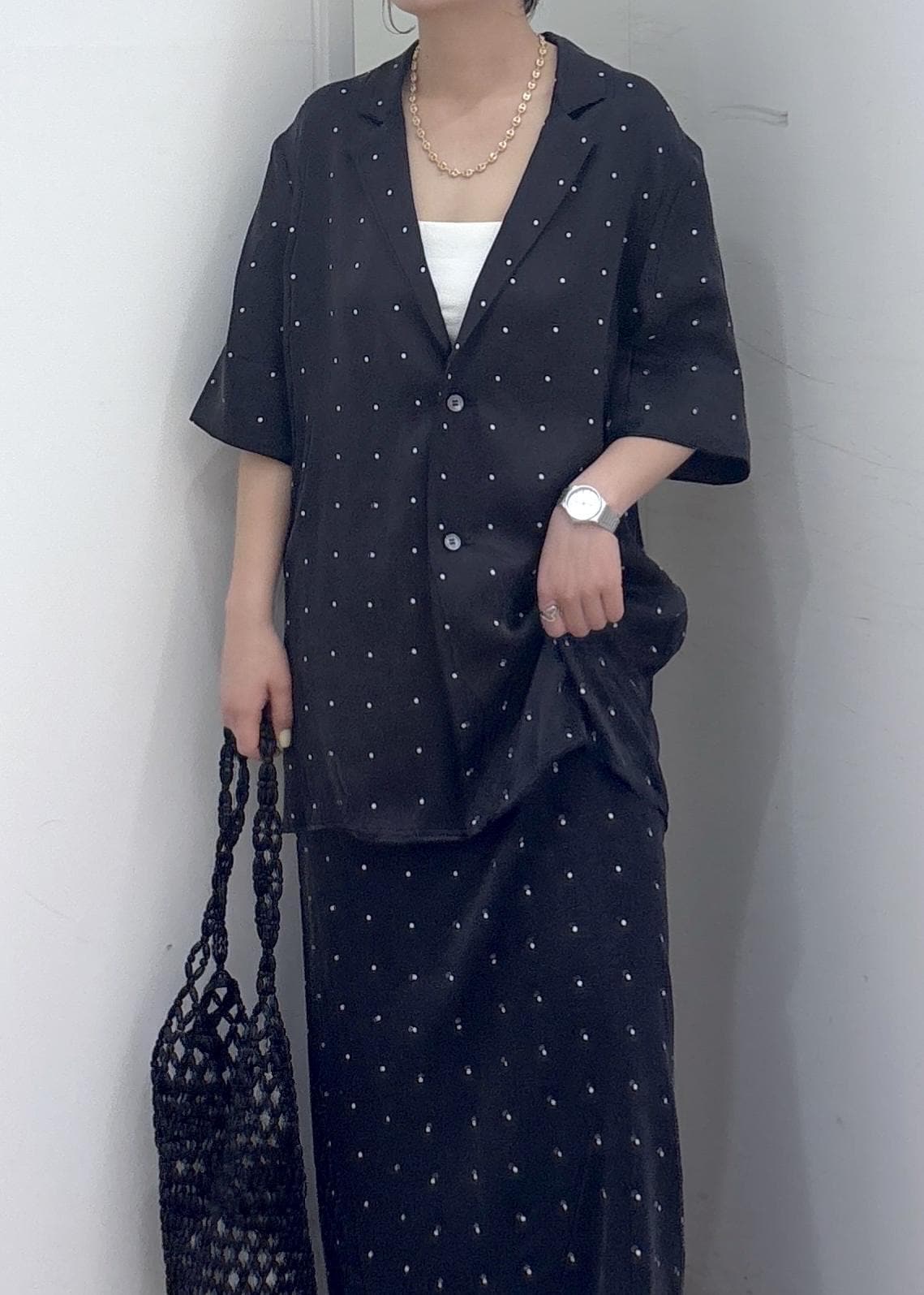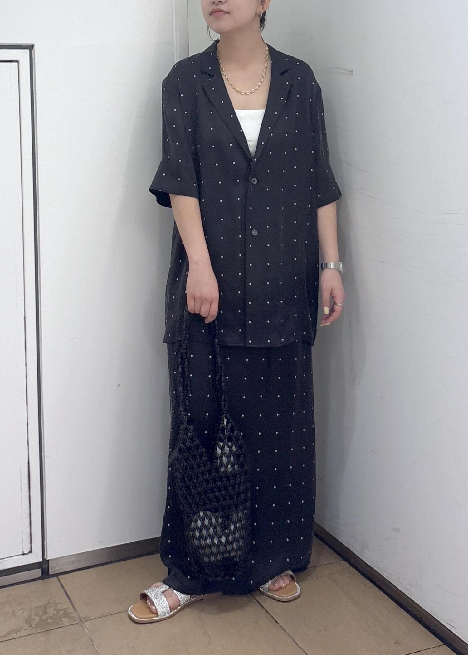 NEW!EMOELLE【EMOELLE】テーラーカラーシャツブラック系 / F¥26,950レビューキャプラ素材なのでサラサラとしており、とても着心地が良いです◎さりげないドット柄が可愛いです。