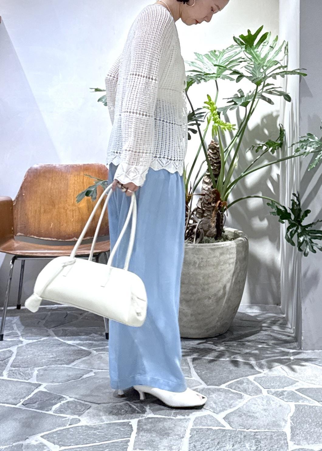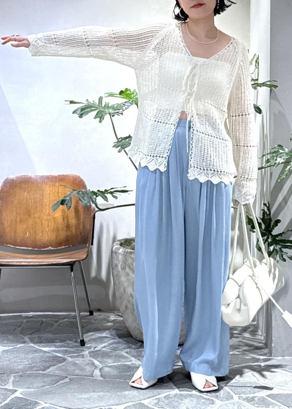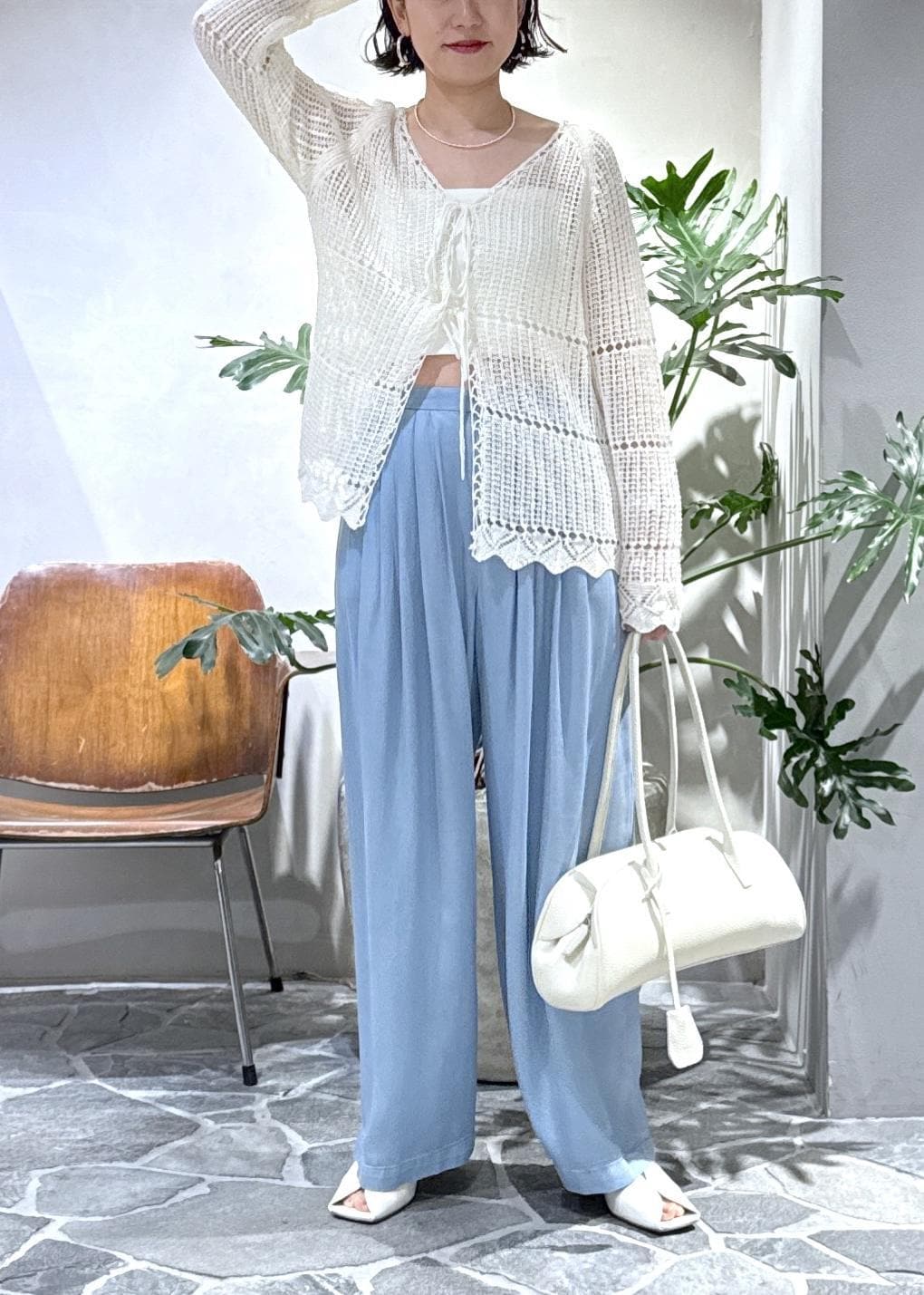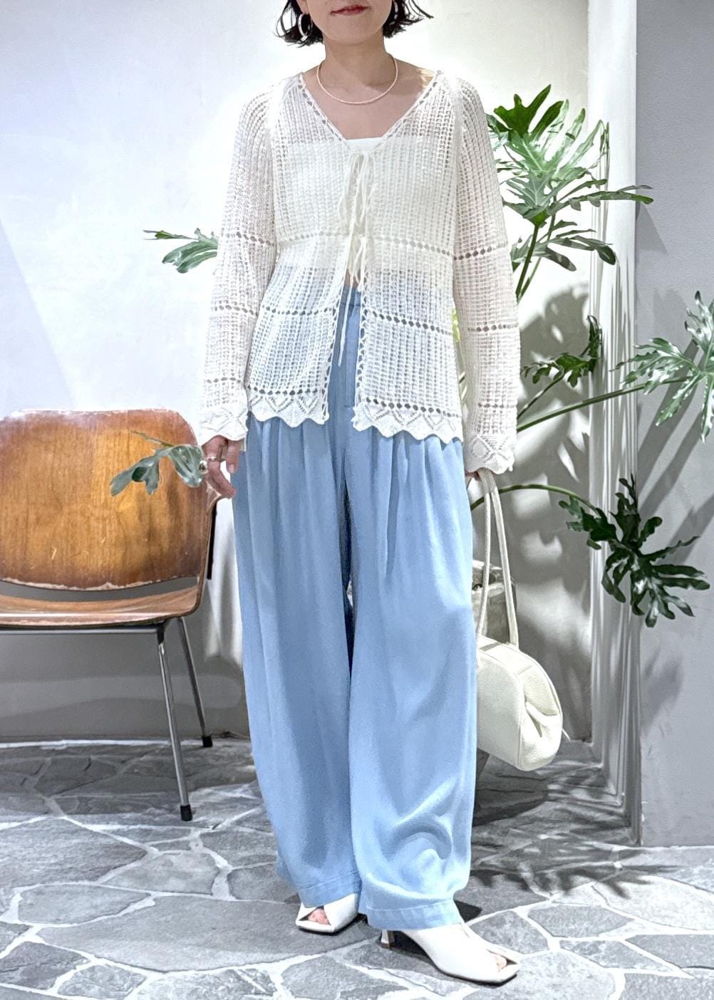 SALON adam et ropéクロシェニットカーディガンオフホワイト / F¥19,800レビューコットンポリのリネンライク素材。大人なかぎ編み柄がかわいい1枚。キャミやタンクトップの他にロゴT等カジュアルなアイテムをレイヤードしてもかわいいです。