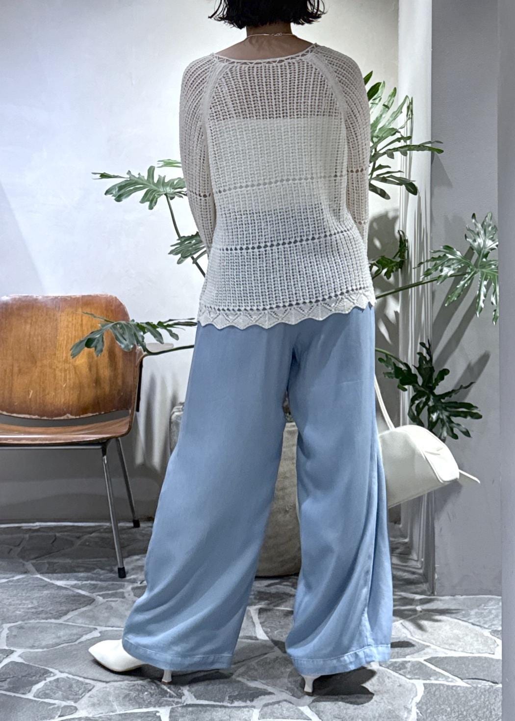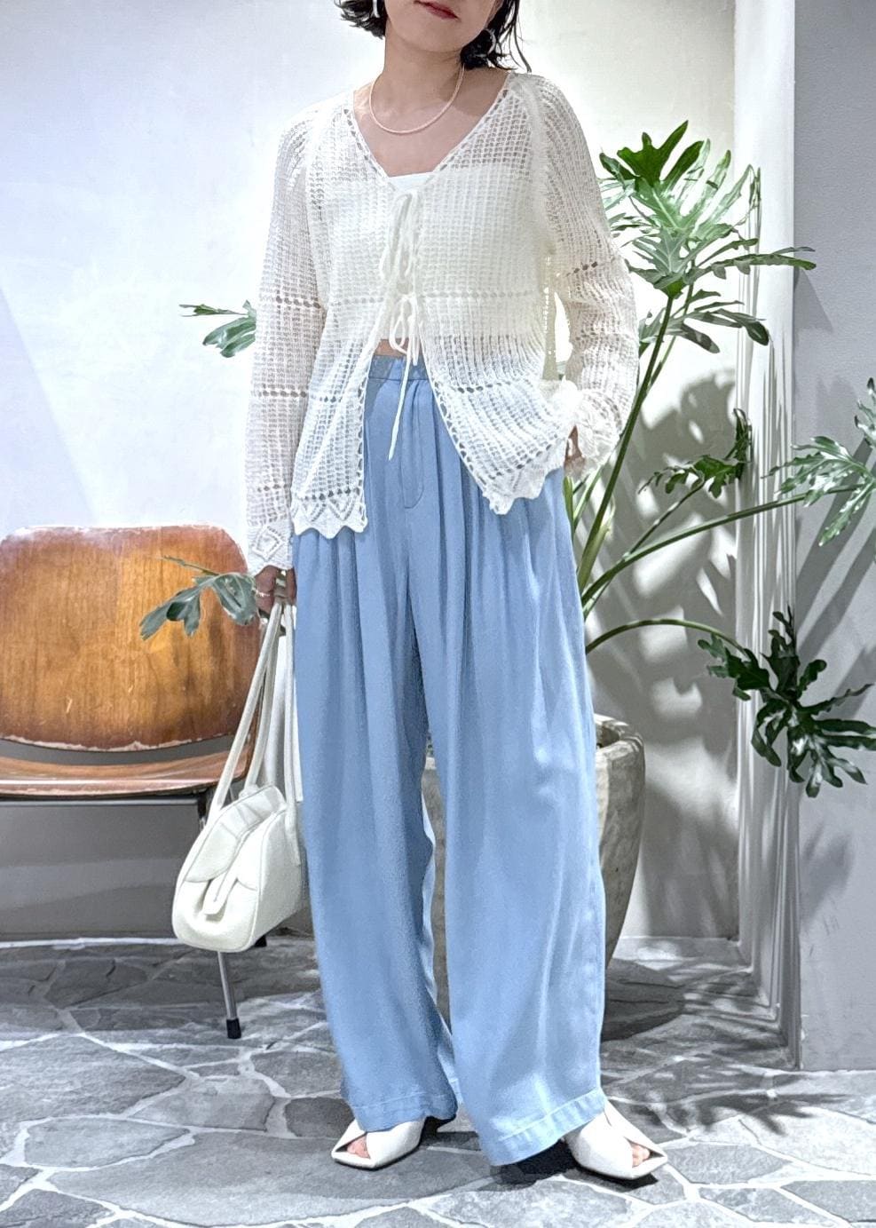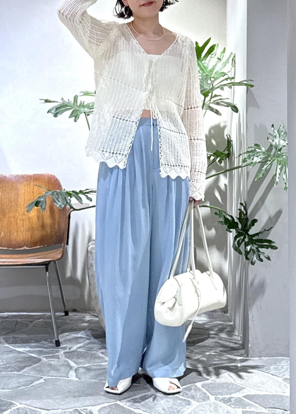 SALON adam et ropéデニムライクタックフォルムワイドパンツ / セットアップ対応サックス / S¥23,100レビュー柔らかい落ち感がでワイドパンツですが、ボリュームが出すぎないのが○。