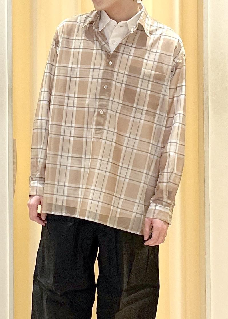 ADAM ET ROPÉ HOMMEシアー パターンド ロングスリーブ プルオーバー シャツベージュ系 / M¥19,800レビュー程よく透け感があり、ベージュのチェックがアクセントになり可愛いです!!