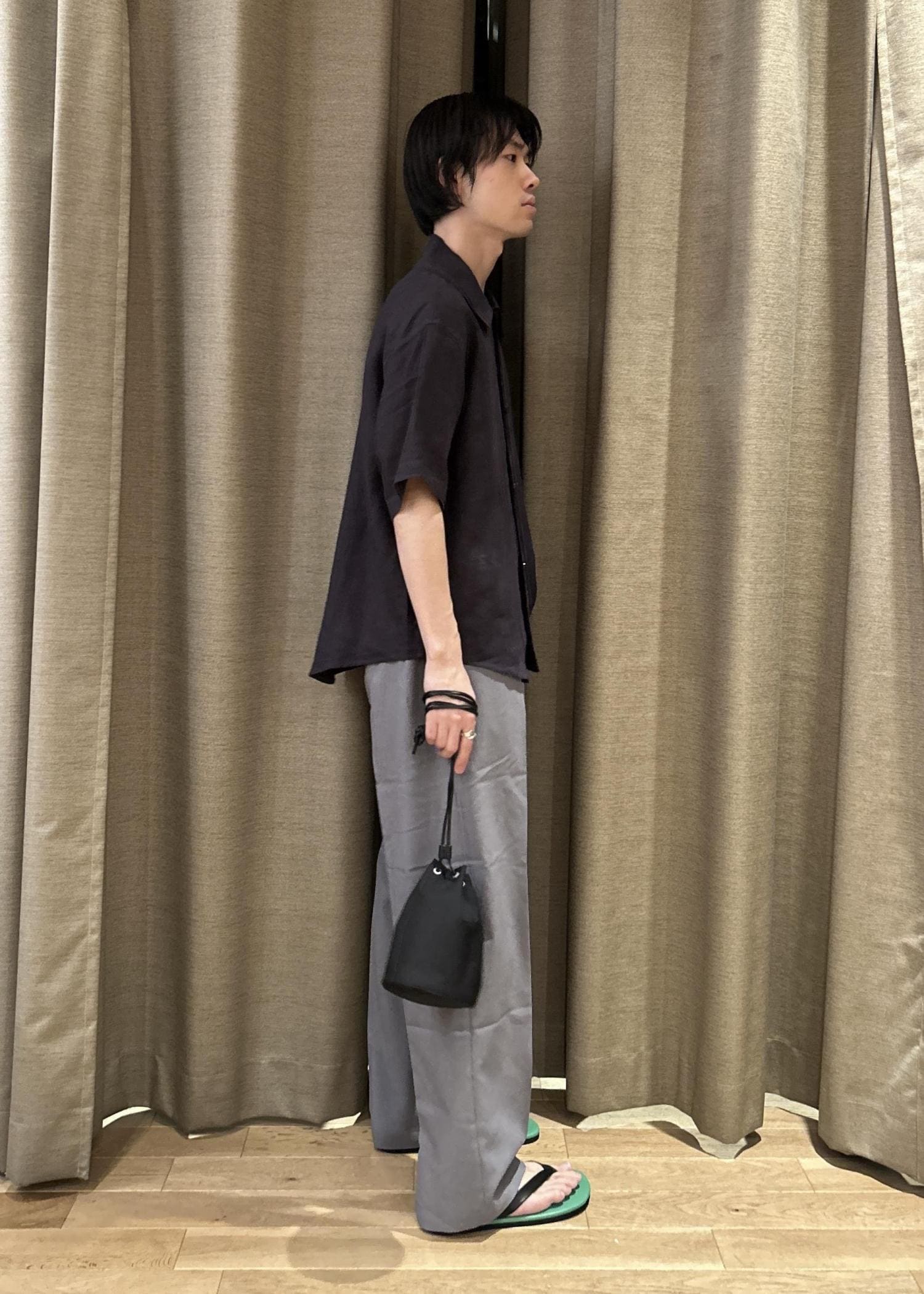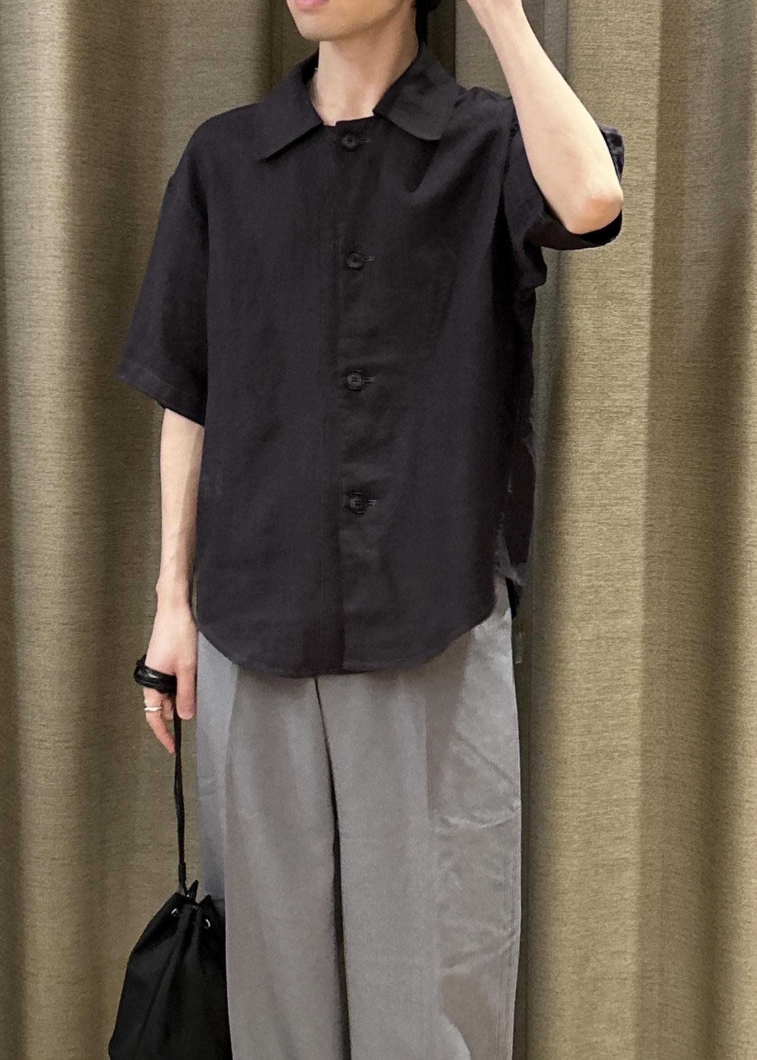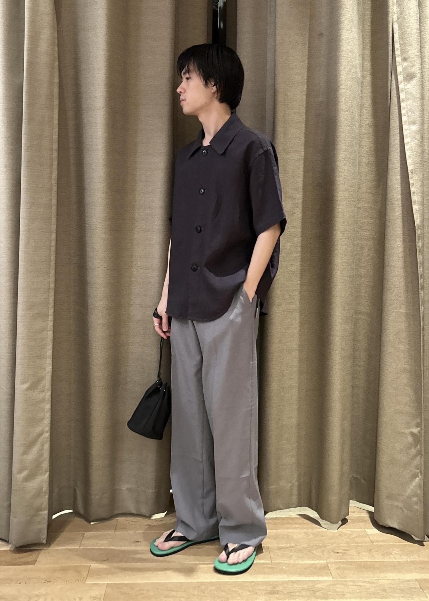 リラックス感のあるリネンシャツに程よくゆとりのあるグラミチ別注のパンツを合わせました。