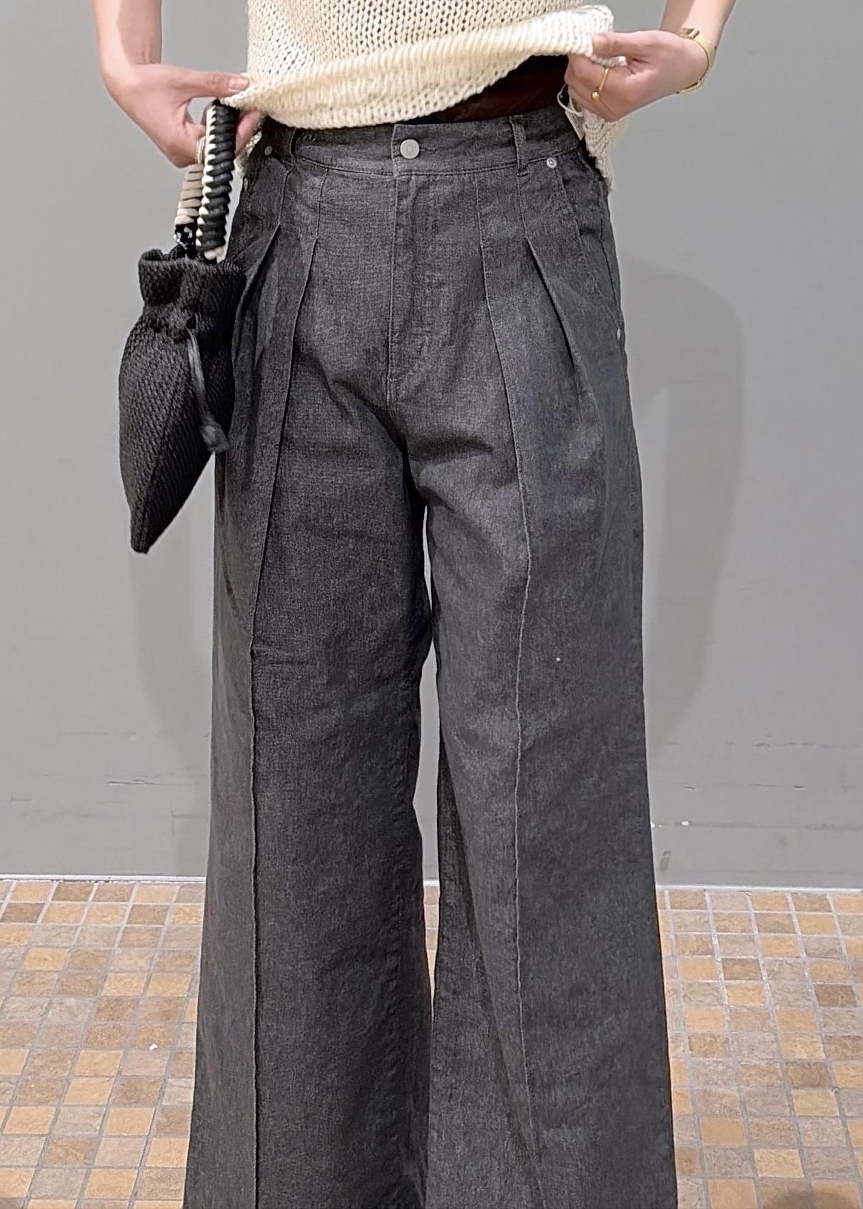 NEW!EMOELLE【EMOELLE】2タックデニムパンツチャコール / 38¥26,400レビュー175cmで38を履き、くるぶしが半分隠れるくらいです!