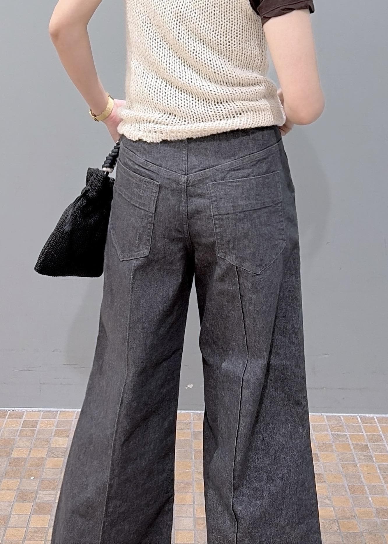 こちらのデニム、伸縮性がすごいです!またそこまで分厚い生地ではないので、夏に履いていても蒸し暑くならないと思います◎ -