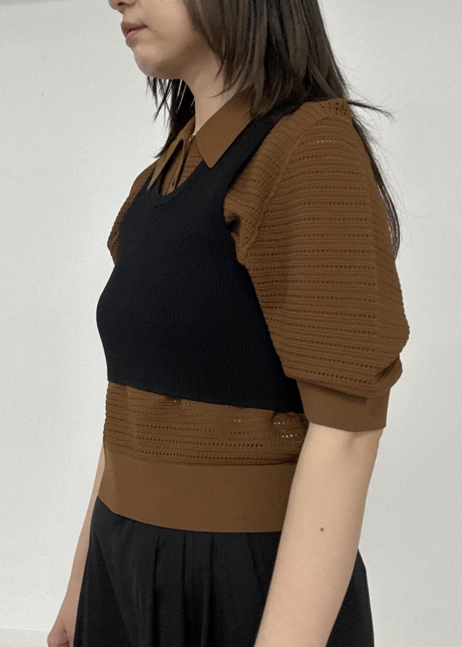 予約ADAM ET ROPÉ FEMME【サステナブル】タンクコンビパターンポロニットブラウン / F¥16,500レビュー素材は柔らかく伸縮性があります!