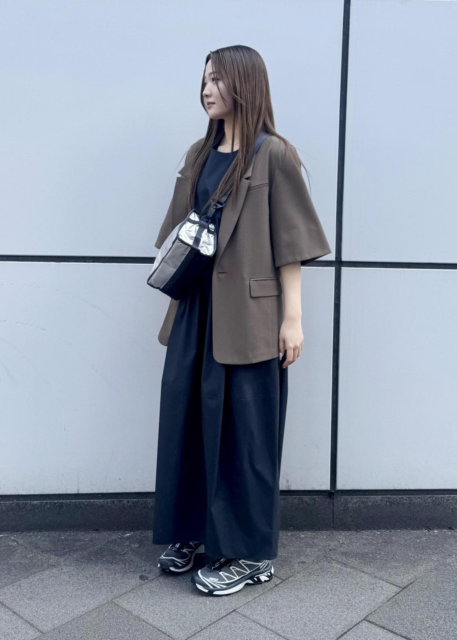 大人っぽさを取り入れつつ、サロモンでカジュアルさを。