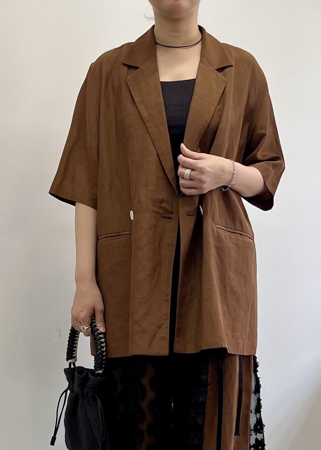 ADAM ET ROPÉ FEMMEキュプラリネンMIXハーフスリーブジャケットキャメル / 38¥29,700レビューさらっと肌触り良く、涼しく着られる素材感です。