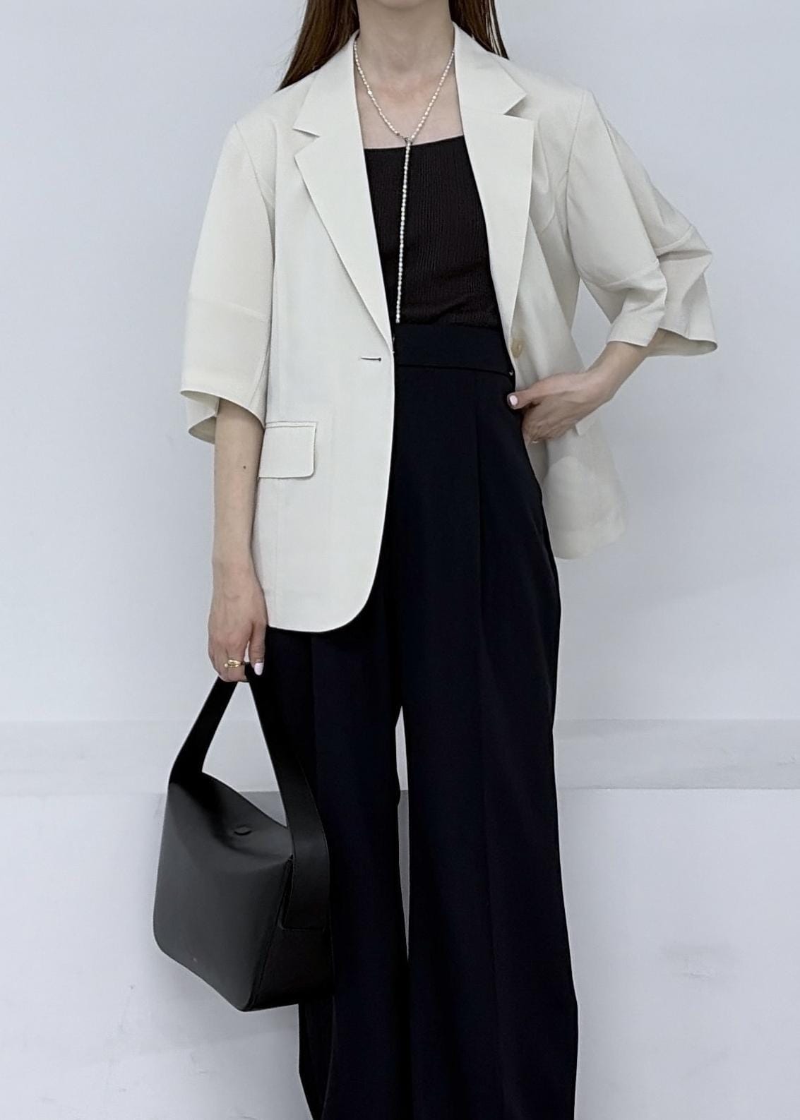 デザインブラウスなども重ねやすいです。