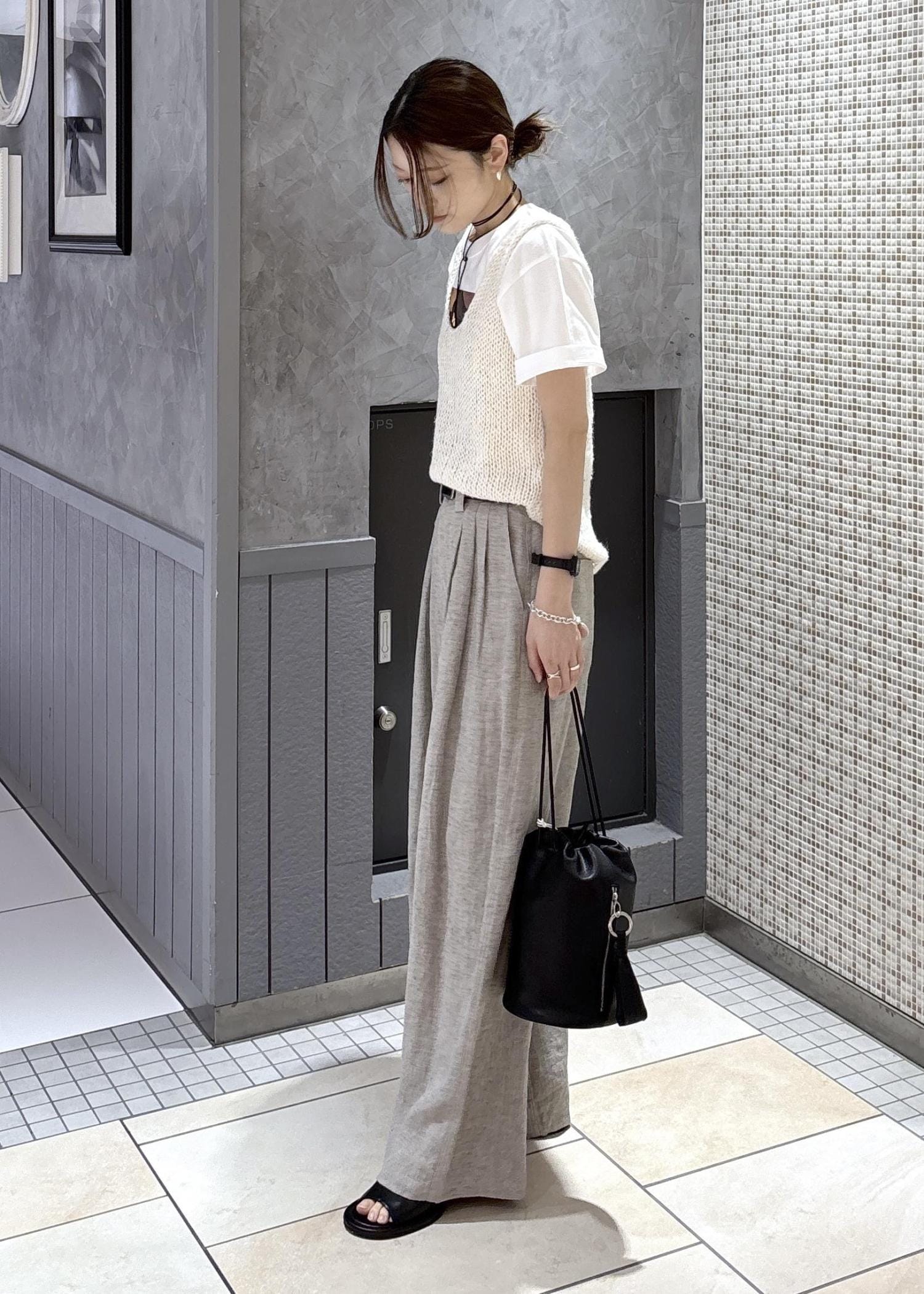 ベージュのワントーンに小物を黒でしめて、夏の大人カジュアルにしました!