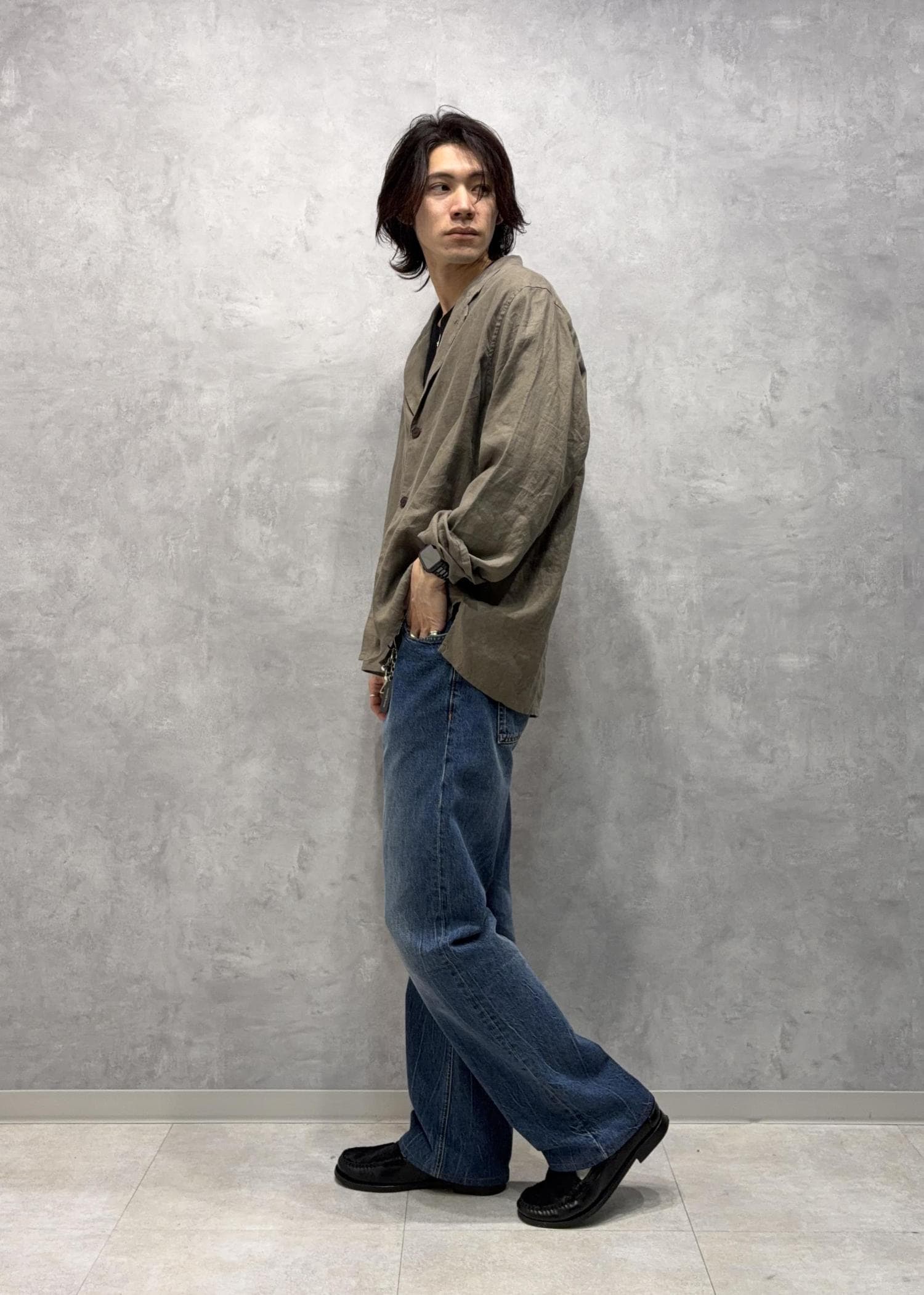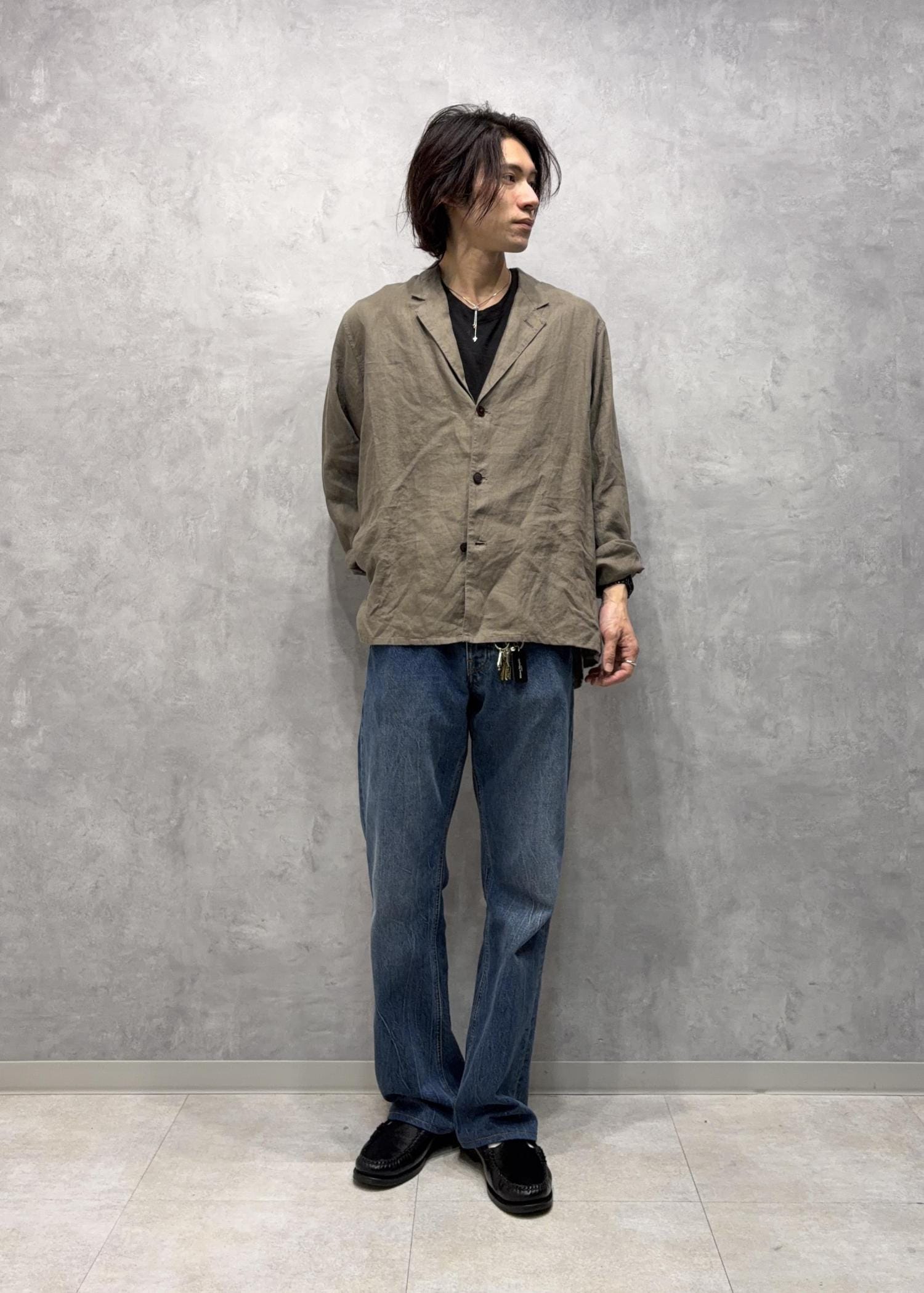 ボックスシルエット リネン シャツ ジャケットスタイリング