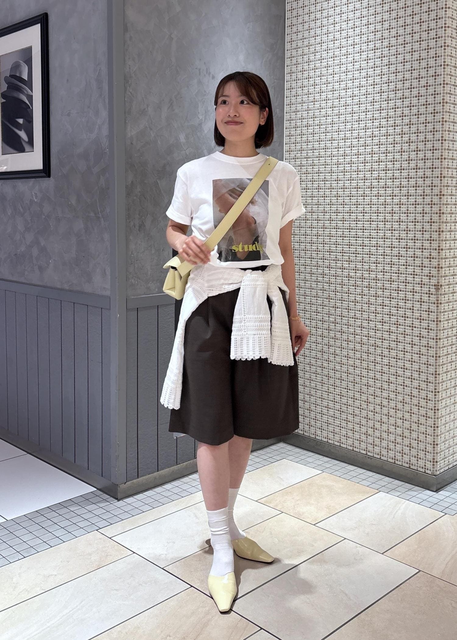 私はイエローロゴのT-Shirtsをリアルバイし、小物もイエローで合わせ、爽やかなコーデを組んでみました!