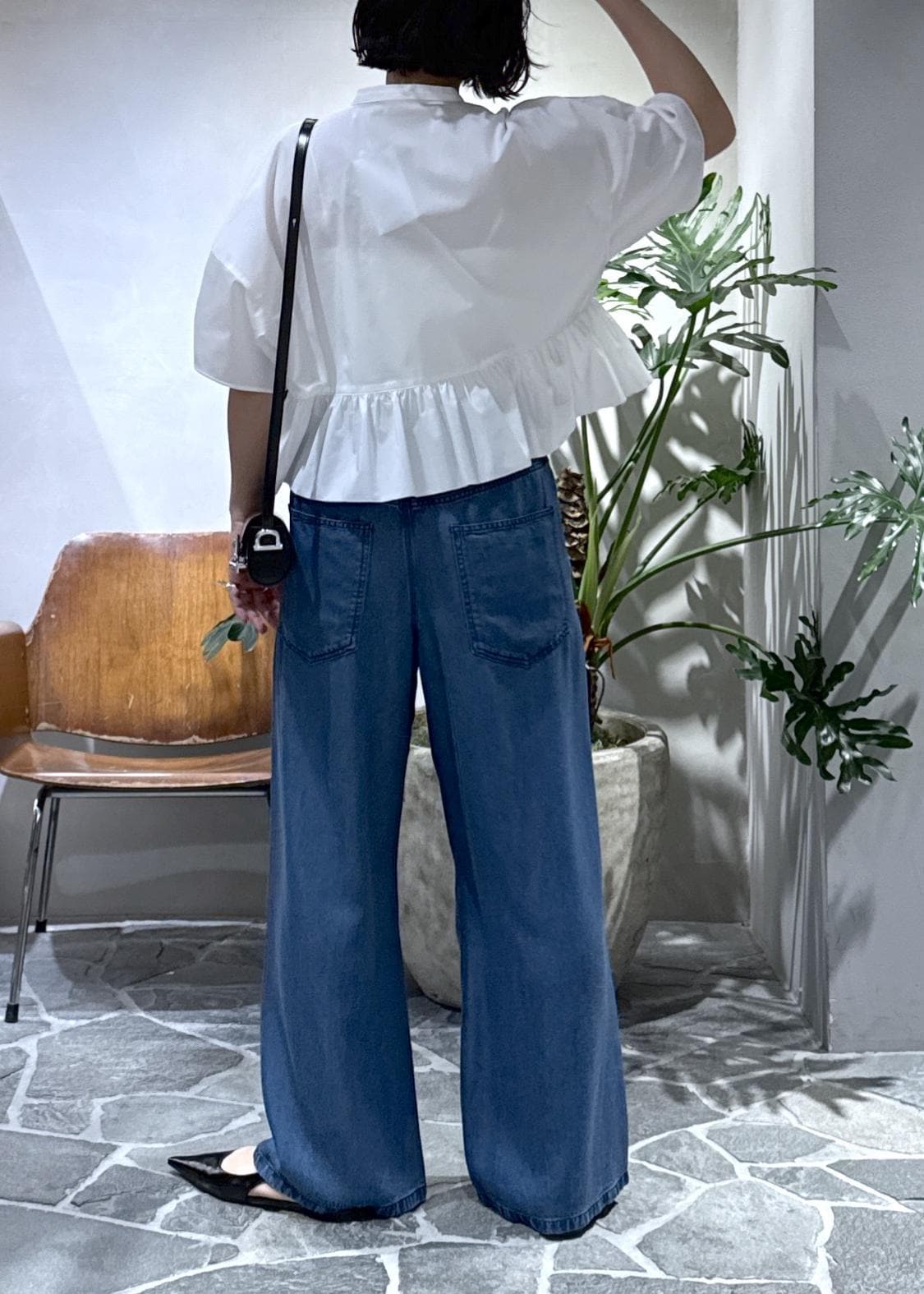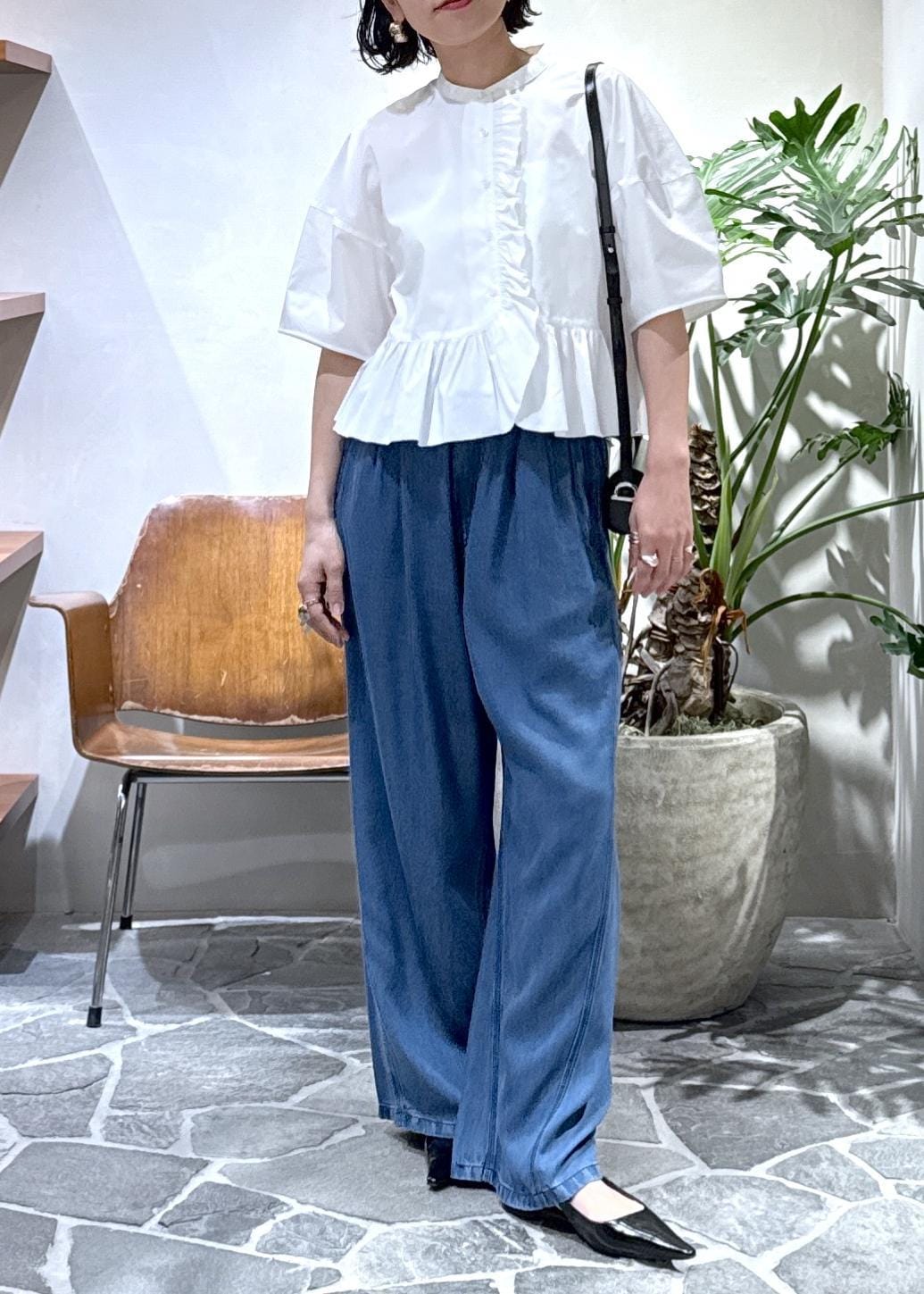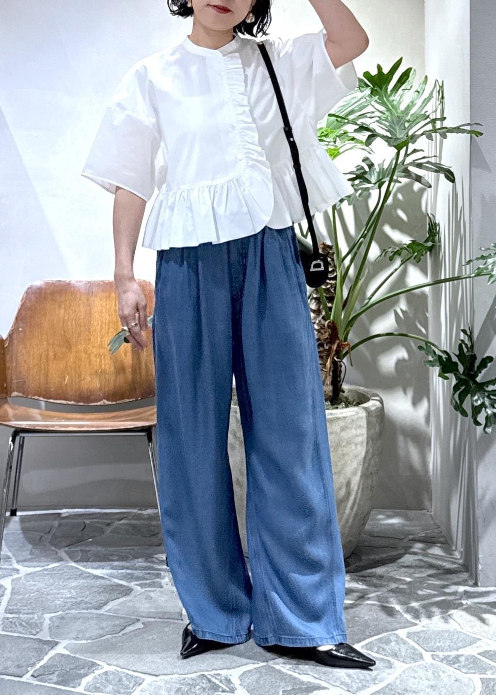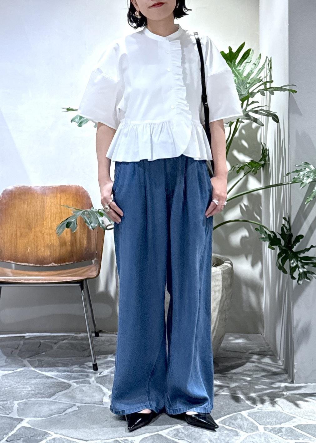 今回はライトデニムイージーパンツと合わせてスタイリングしました。