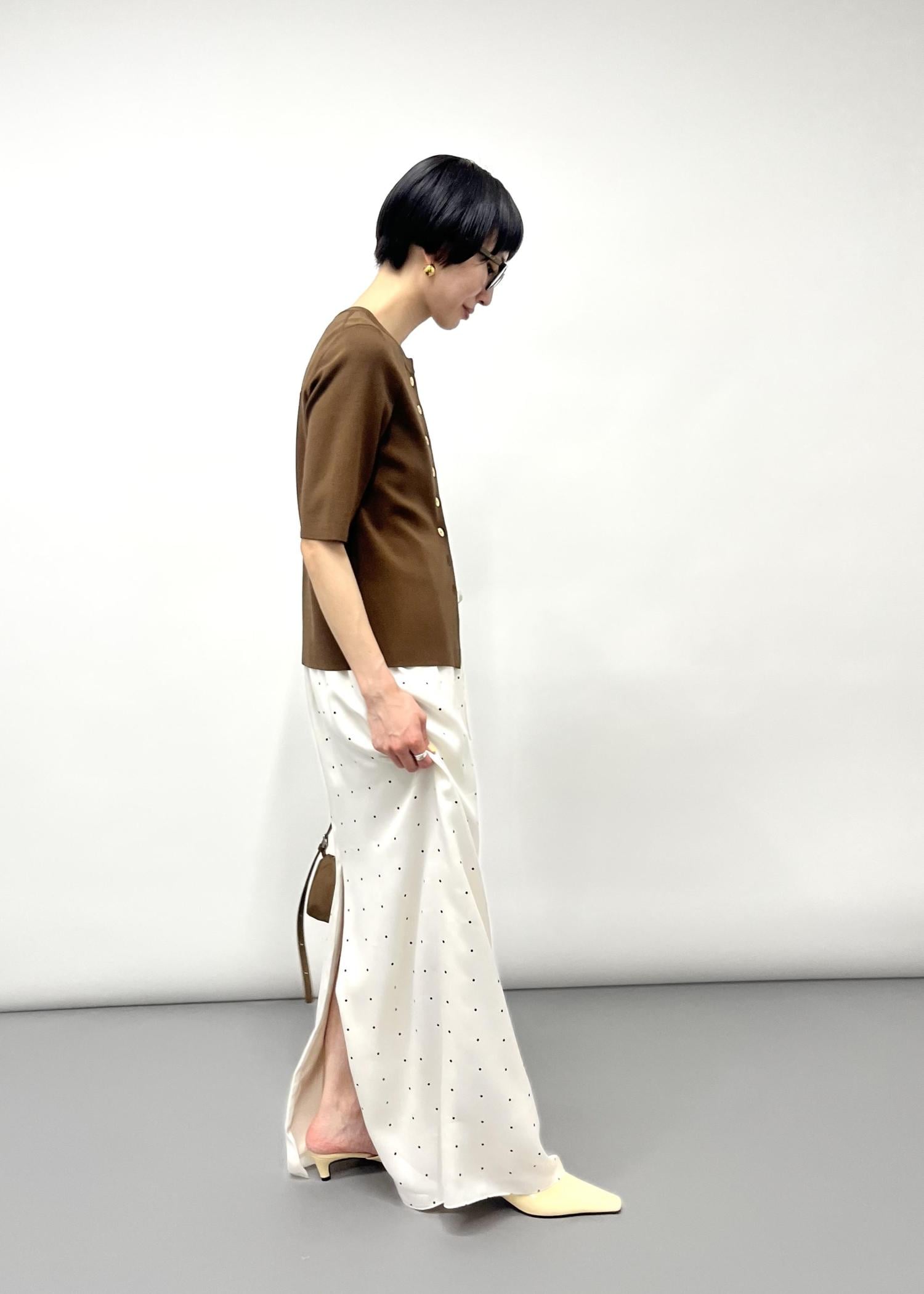 NEW!EMOELLE【EMOELLE】イージースカートオフホワイト / 38¥25,300レビュー大人が着やすい主張しすぎないドットデザインが今年らしさもあり◎ストンと綺麗に落ちるシルエットも女性らしく