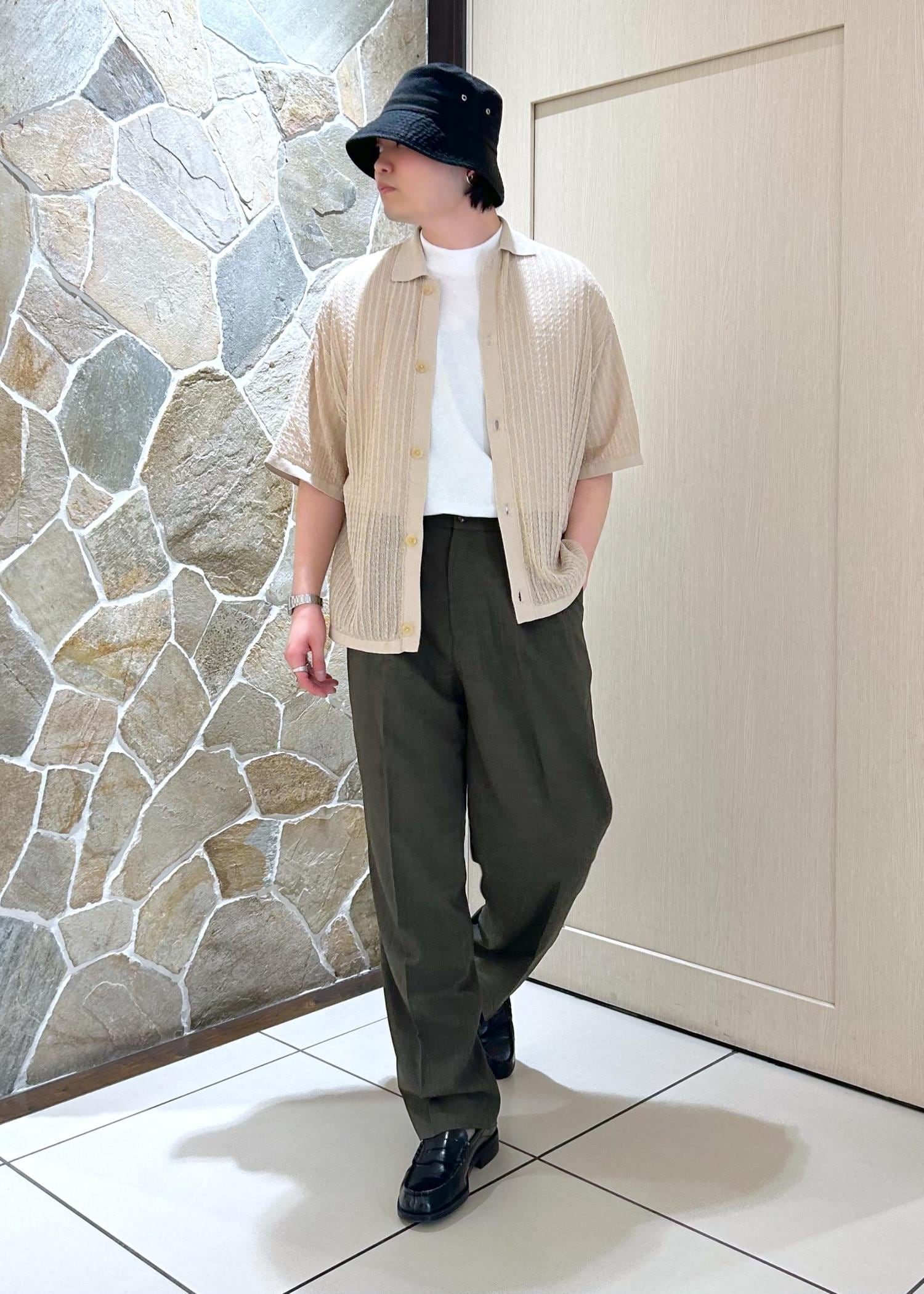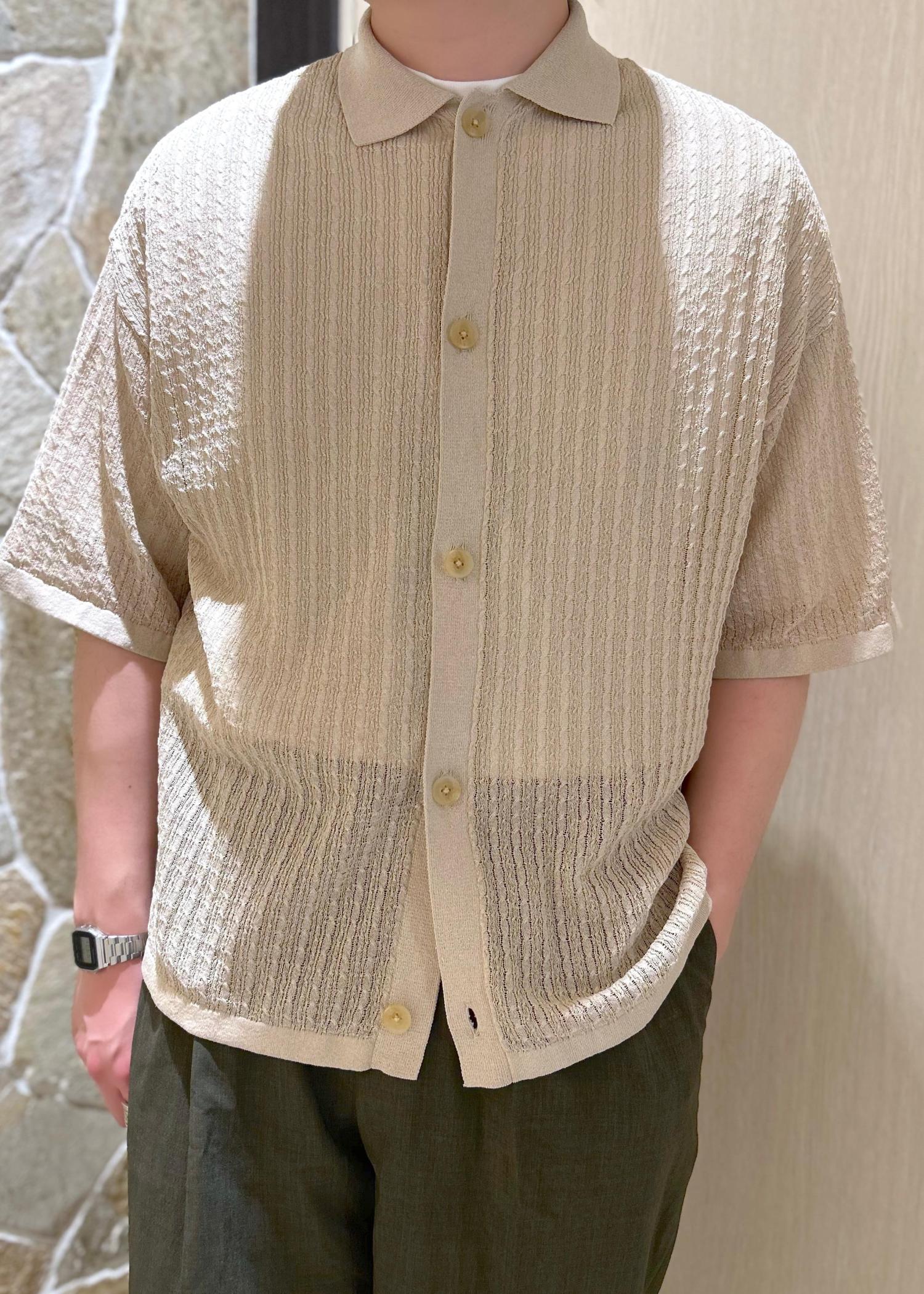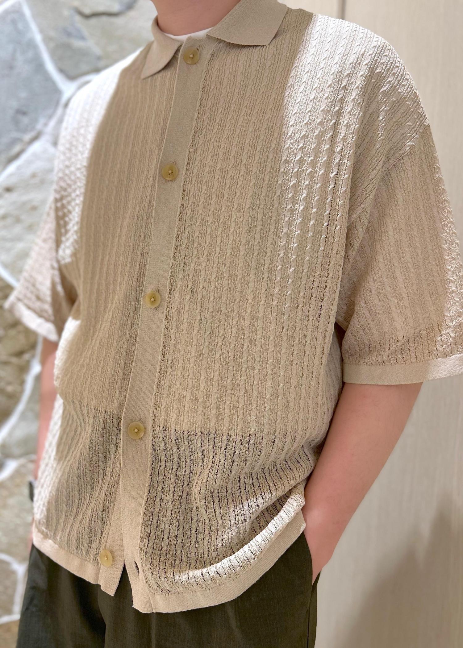 ADAM ET ROPÉ HOMMEシアーニットシャツカーディガンベージュ系 / L¥17,600レビュー178cm / Lサイズ着用