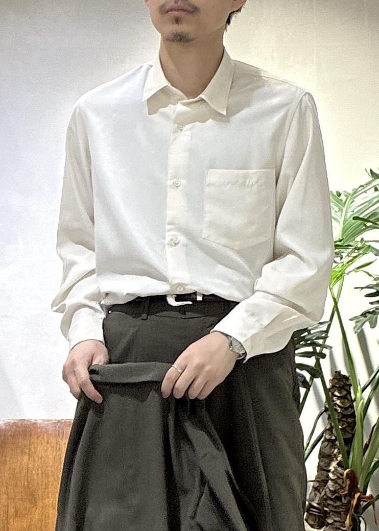 ADAM ET ROPÉ HOMMEスエードタッチ レーヨン レギュラーカラーシャツキナリ / M¥14,300レビューややゆったりめのサイズ感で、僕自身肩幅がありますが、Mでも程よく余裕を持って着用できました。