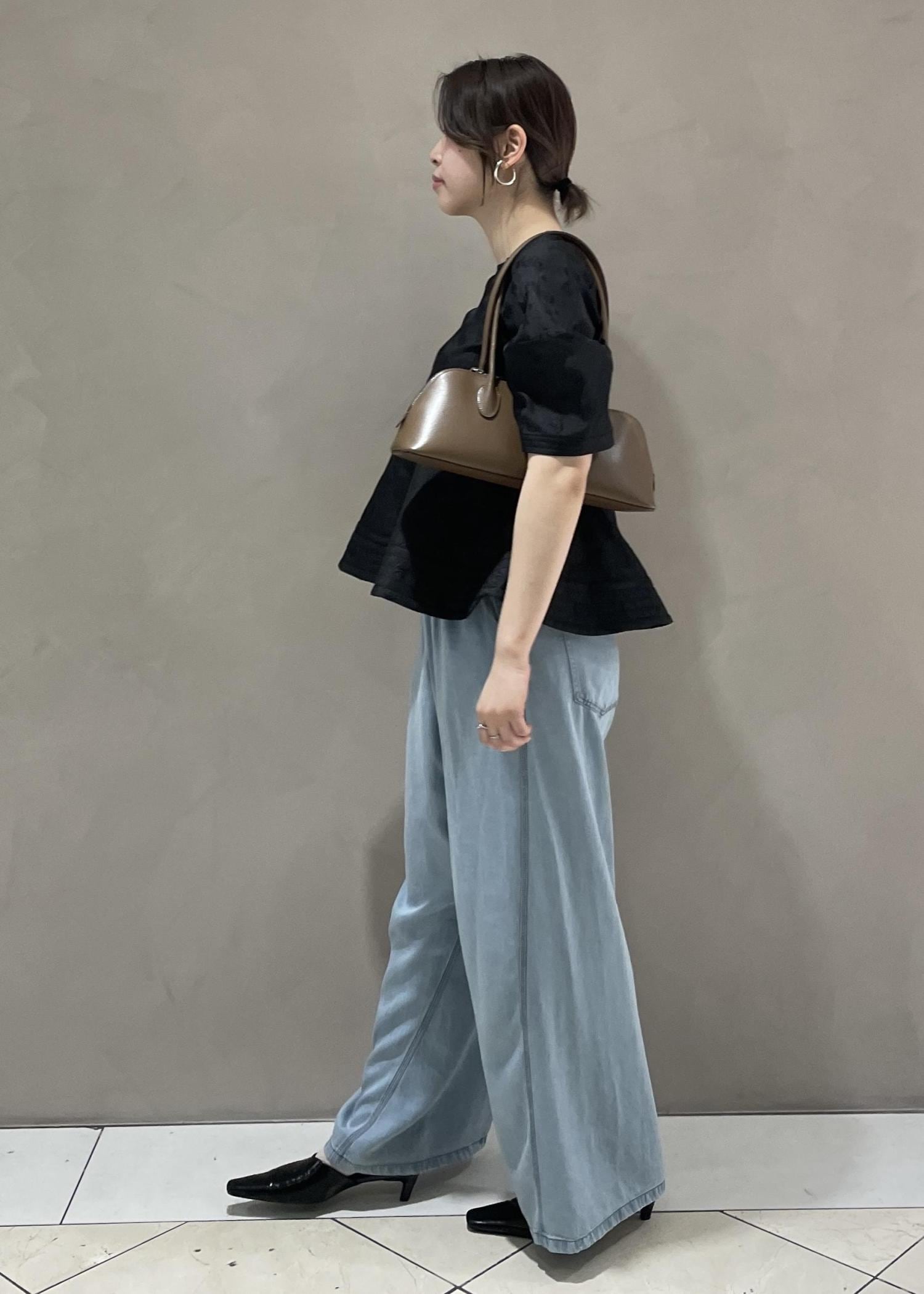 トップスがとても華やかなので、ボトムスは抜け感の出るような柔らかい生地のデニムを選びました。